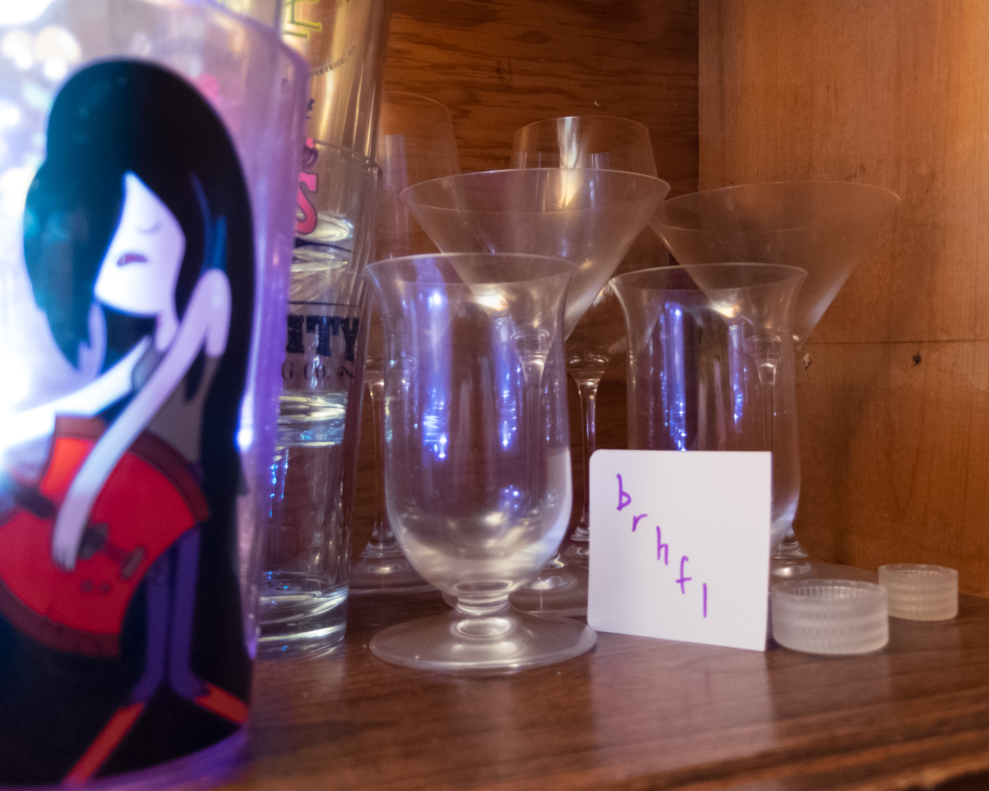 Crystal in the back is, unfortunately, fragile. Also in frame is the Marceline pint glass I got from meh, and three MD pint glasses (one of which is from a long-out-of-business establishment).