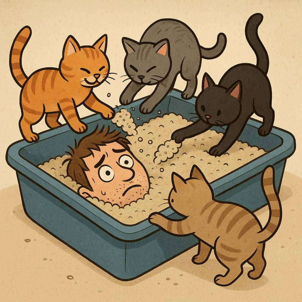 The litter box has been nagging me for weeks about how lonely it is and how dead the cats might be: