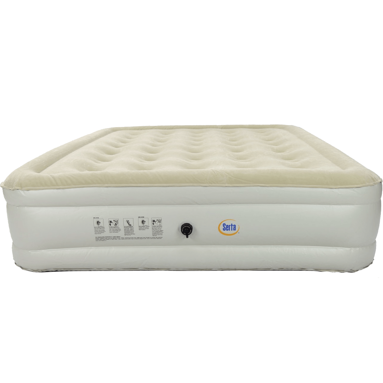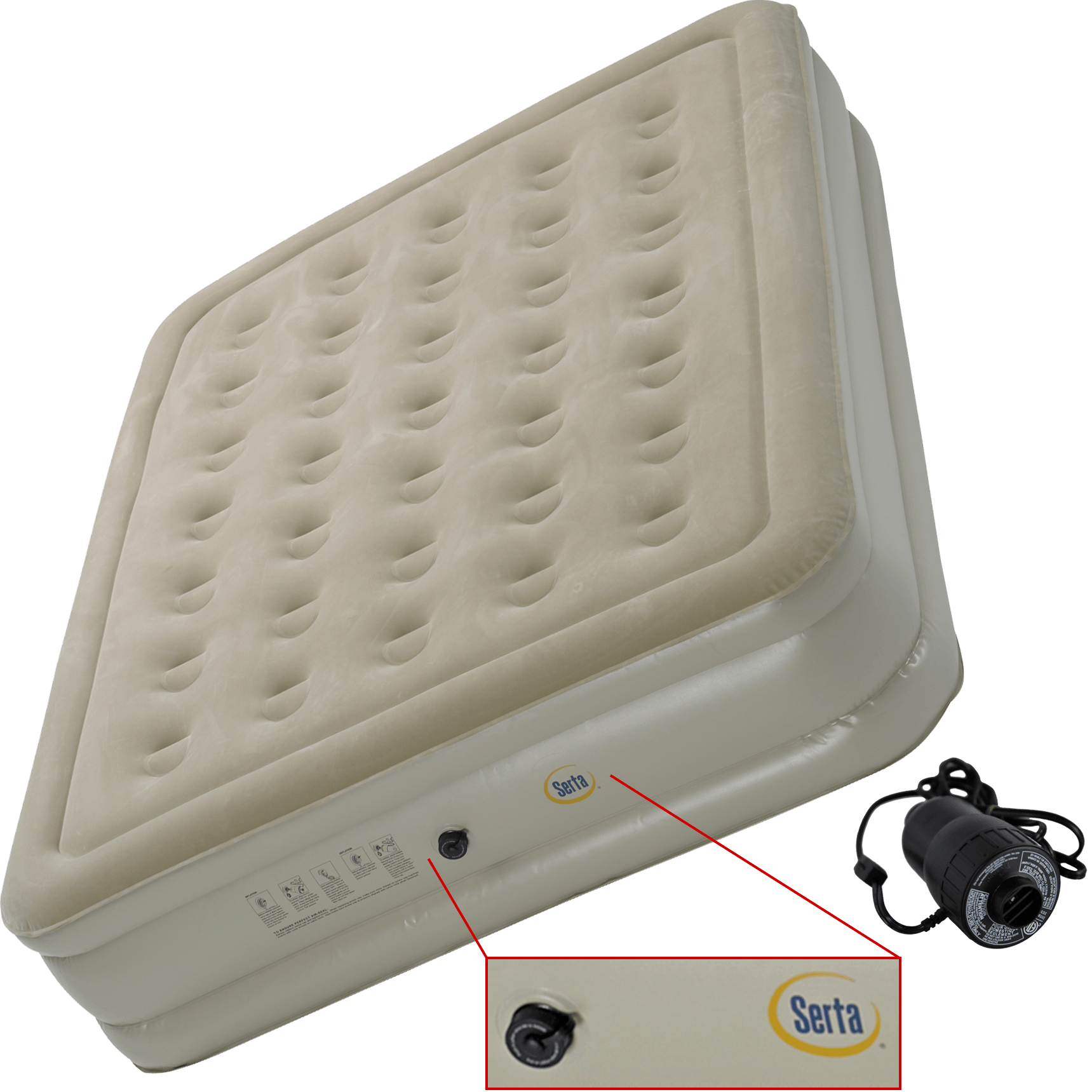 Specs ====- Model: ST840012- Dimensions: 78 x 60 x 15 in- External AC pump inflates bed in about 4 minutes- Material: .55mm flocked top, .35mm vinyl sides and bottom- Capacity: 300 lbs- Weight: 16 lbs- 35 coils- Secure press-lock valve maintains pressureCondition: New Warranty: 1 Year SertaShipping: $5 or free with VMP What’s in the Box? ====1x Queen air mattress1x Carrying bag1x AC air pumpPictures ====Air mattressFront viewDetail of the valve with pumpSpice things upPrice Check ====$99.99 List, $79 at Amazon