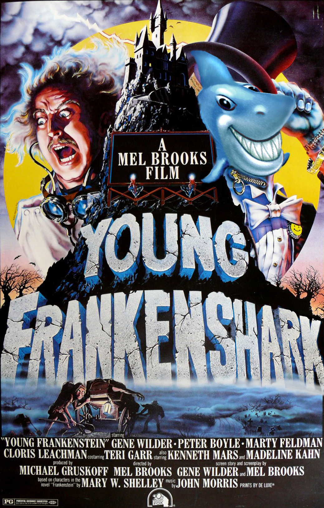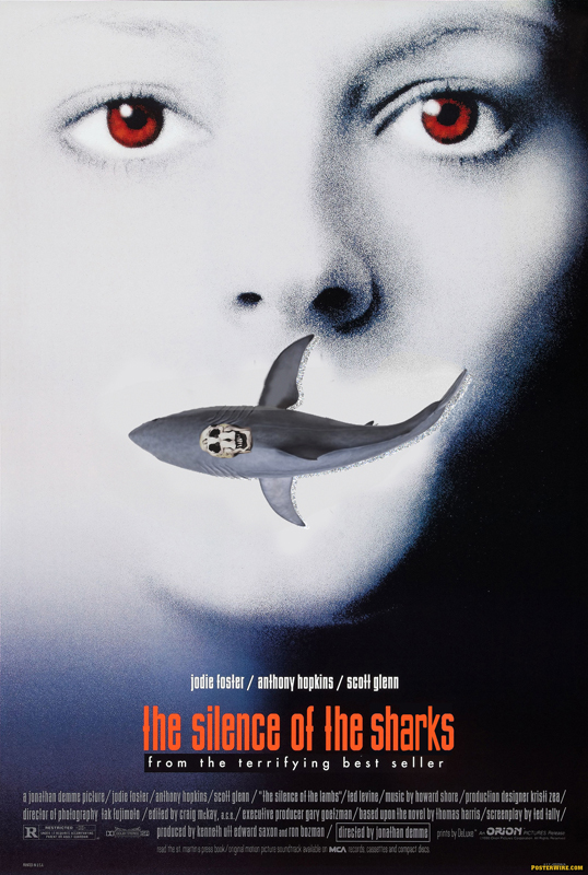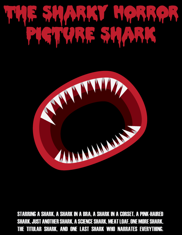 The Assignment: create a movie poster or DVD cover adding at least one shark to an unlikely movie (either a real movie without sharks, or one you made up in a genre that usually doesn’t feature sharks).