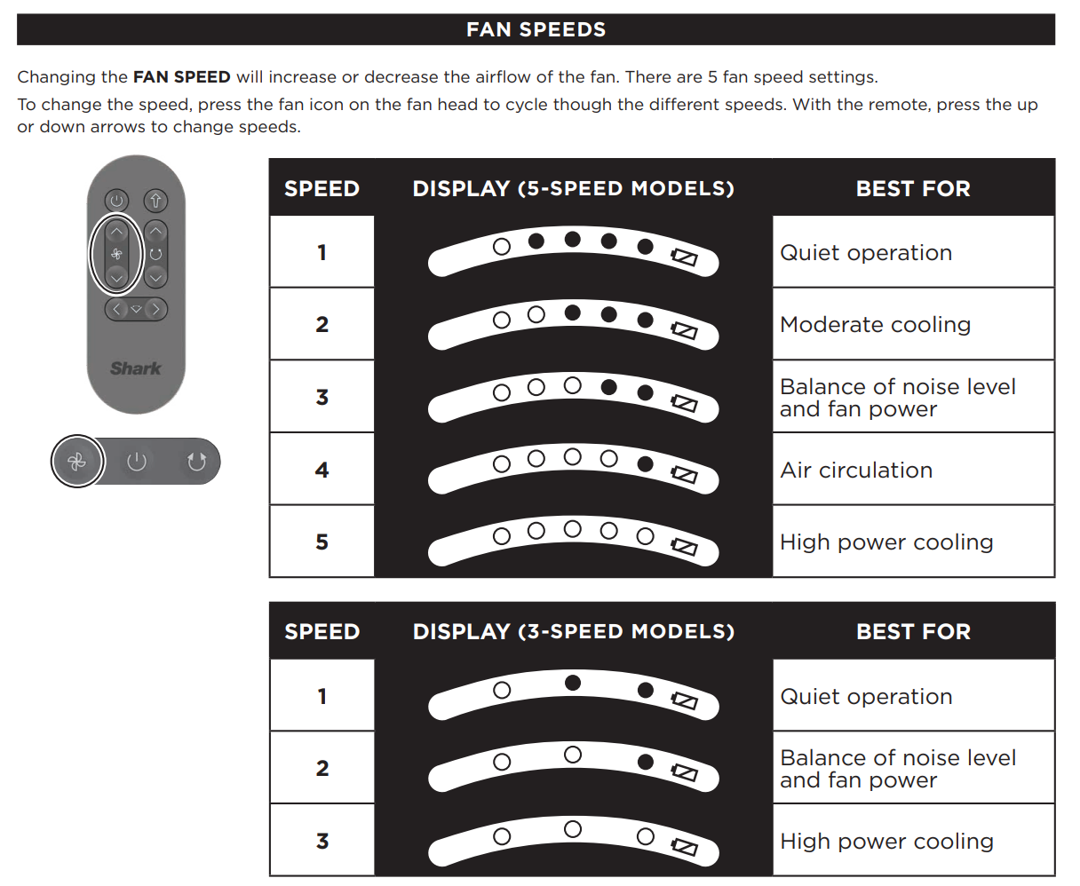@customers We were just informed that the model we are selling has 3 fan speeds instead of 5 We apologize for this error – please write into customer service if you need to cancel your order due to this spec difference. Below is an image describing the difference.