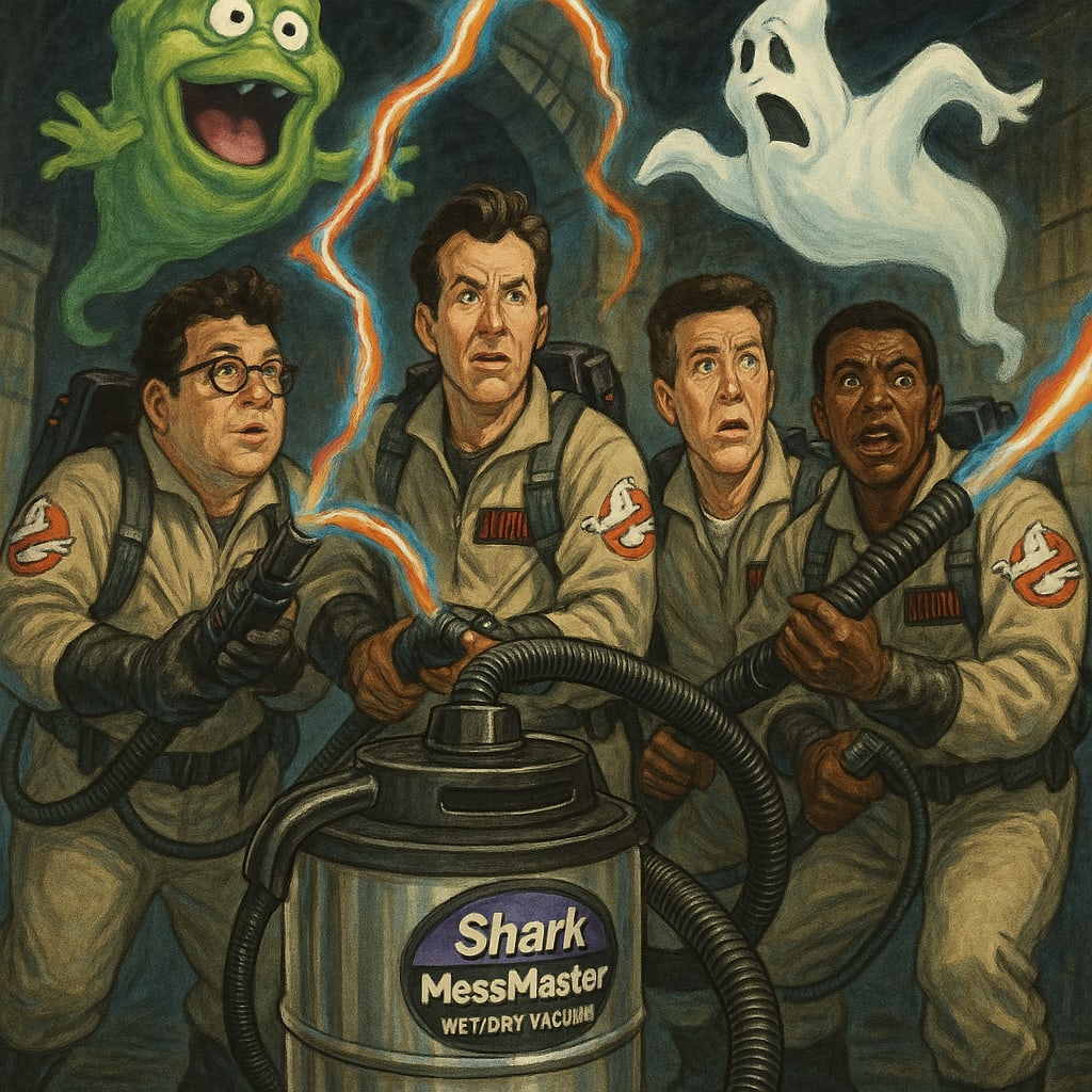 /showme ghostbusters using Shark MessMaster Wet/Dry Vacuum to capture ghosts.