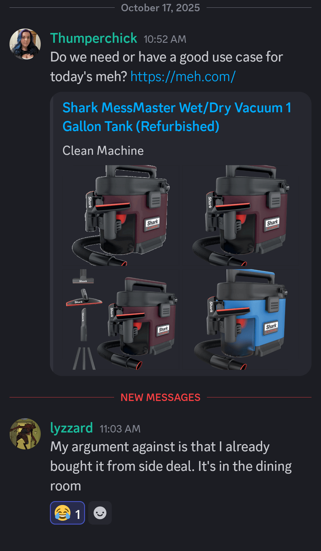 I hope that’s the vacuum and you’re not alluding to me or my kitchen. If the vac, sounds perfect for my needs!