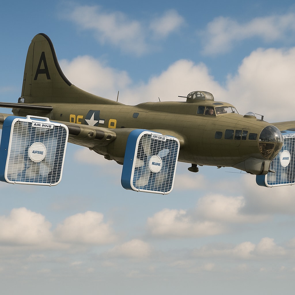/showme air king whole house window fans replacing engines of b-17 bomber.