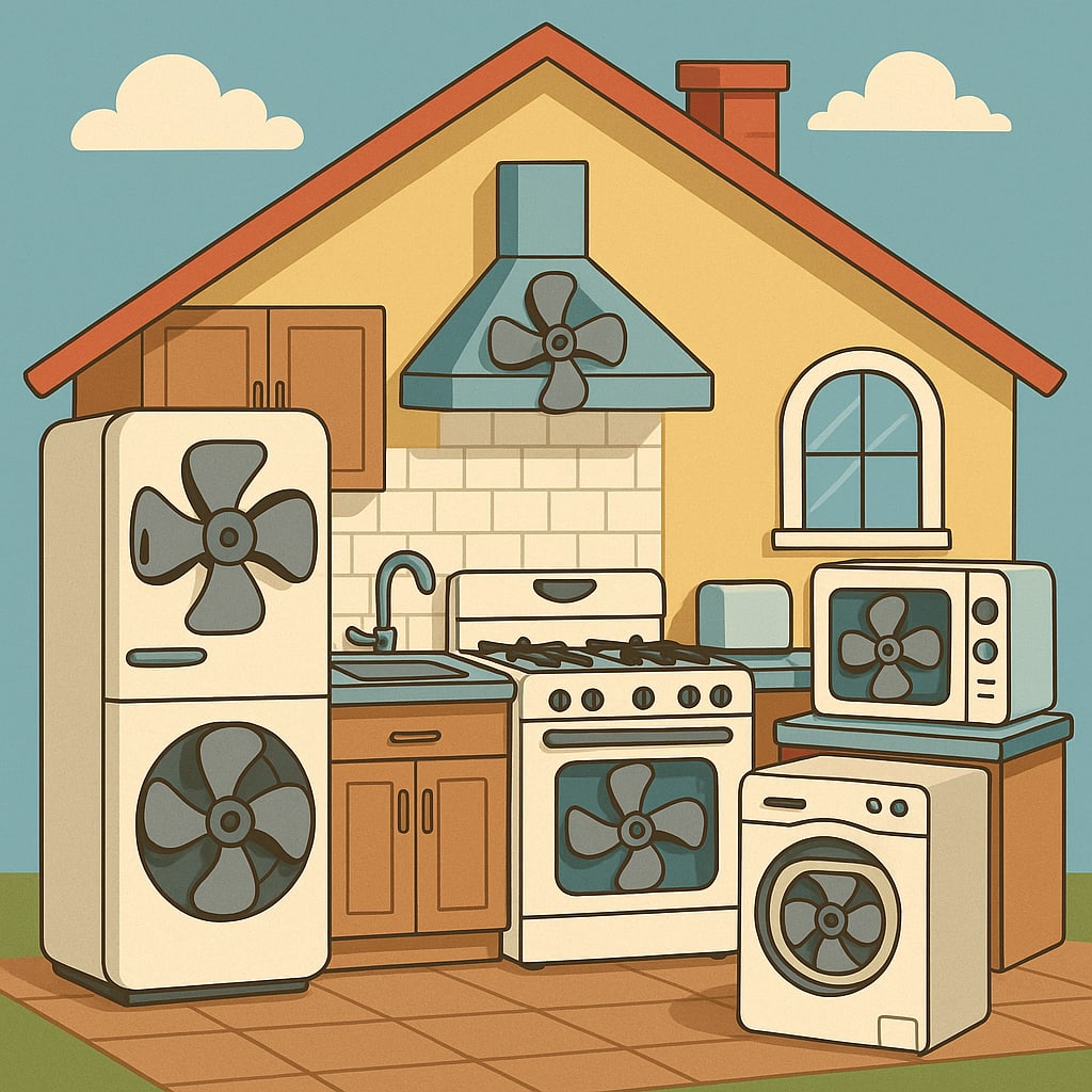 /showme house with kitchen appliances that have fans integrated into them.