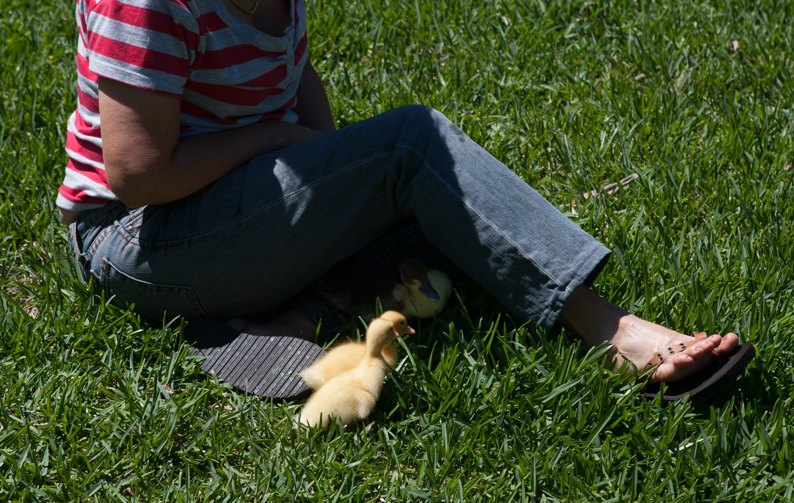 Here’s a photo of two of my babies around Mrs. cengland0 who doesn’t usually like animals (including cats and dogs and my current conure) but she does like the ducks.
