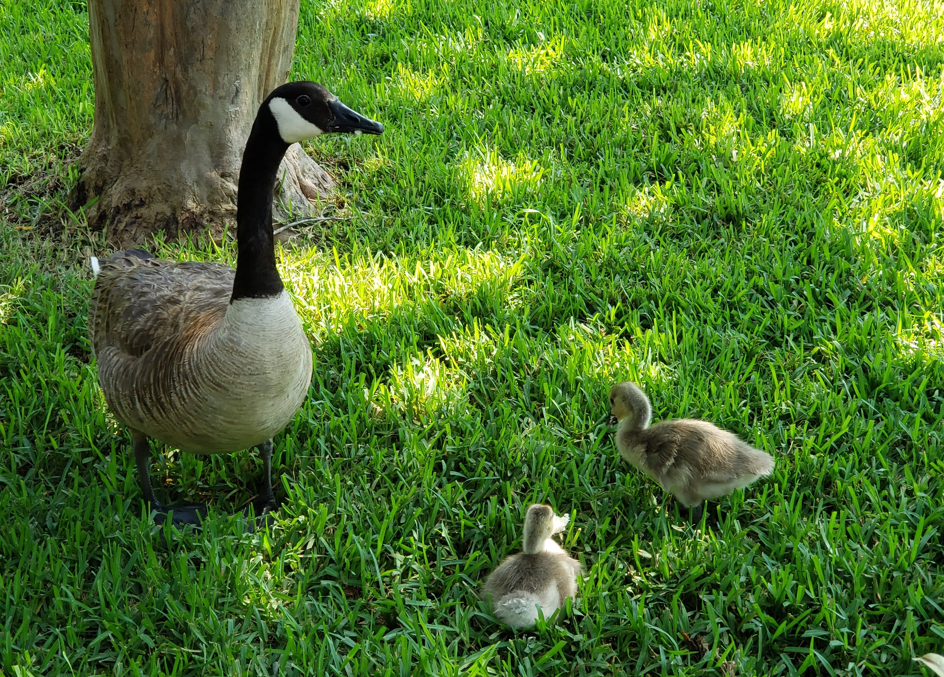 The geese are very protective even to other geese. None of the other geese are allowed to get close to those babies without being chased away.