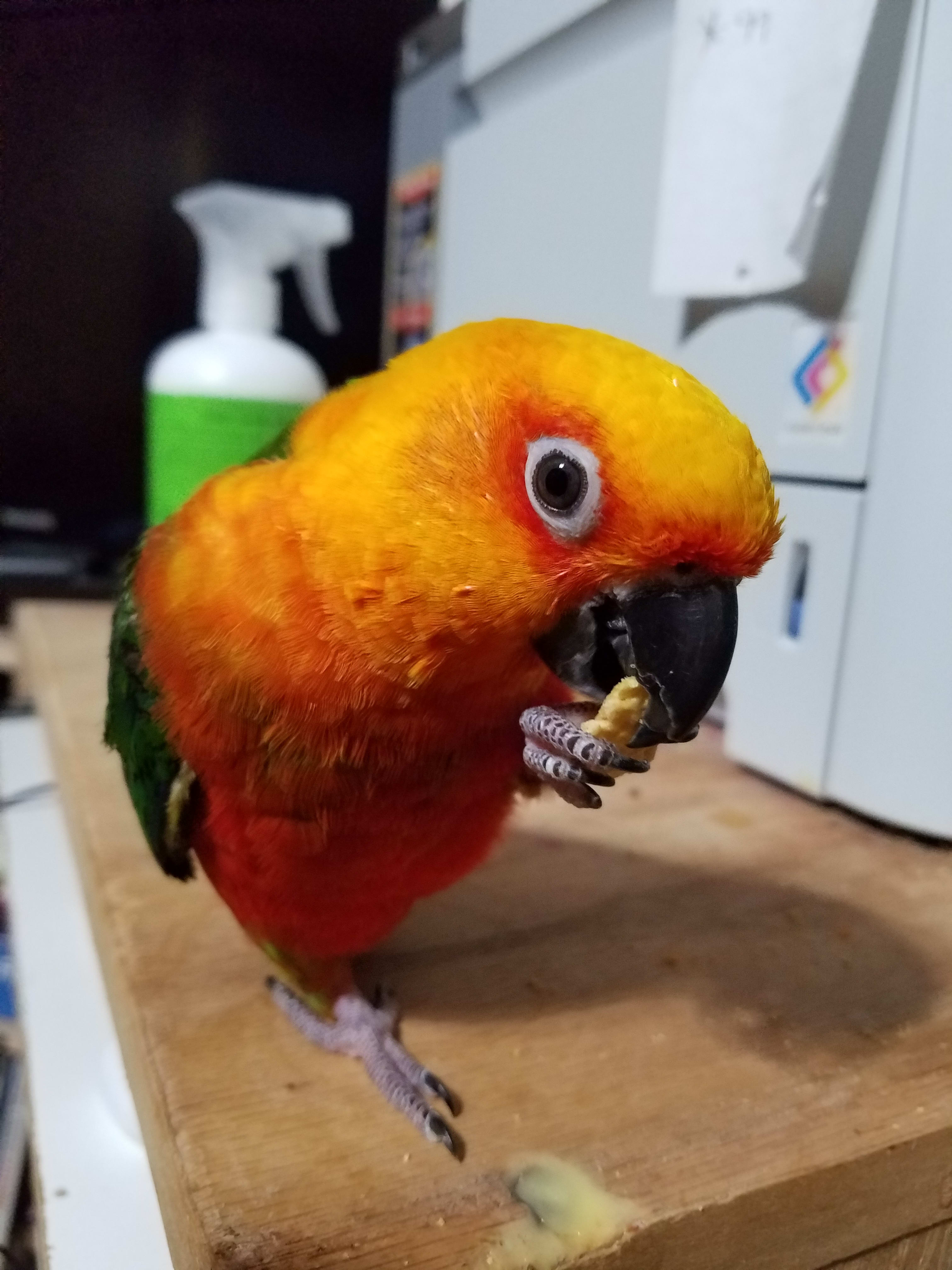 I had a Nanday Conure. Beautiful bird, but he was an ornery cuss, even to me.
