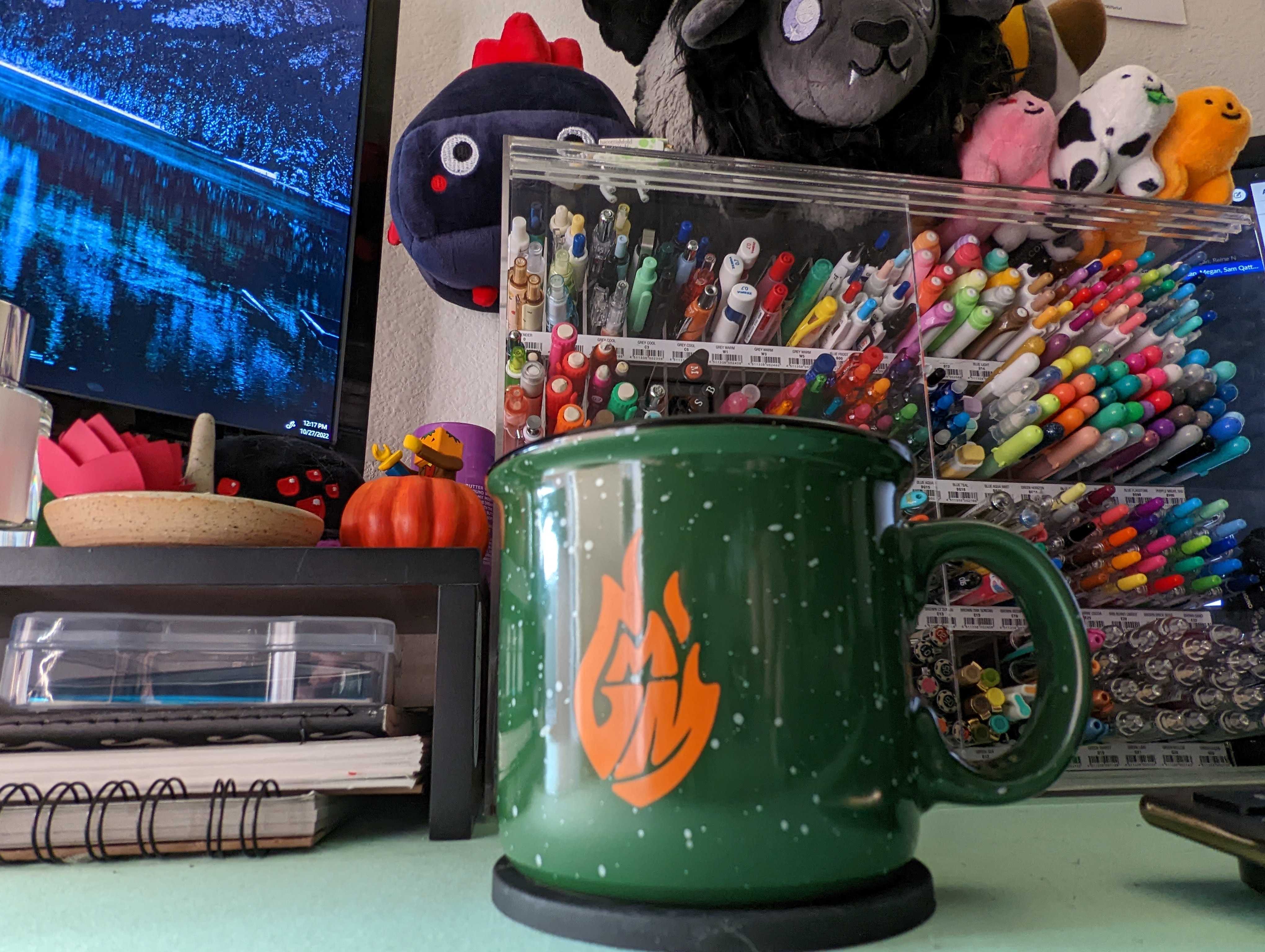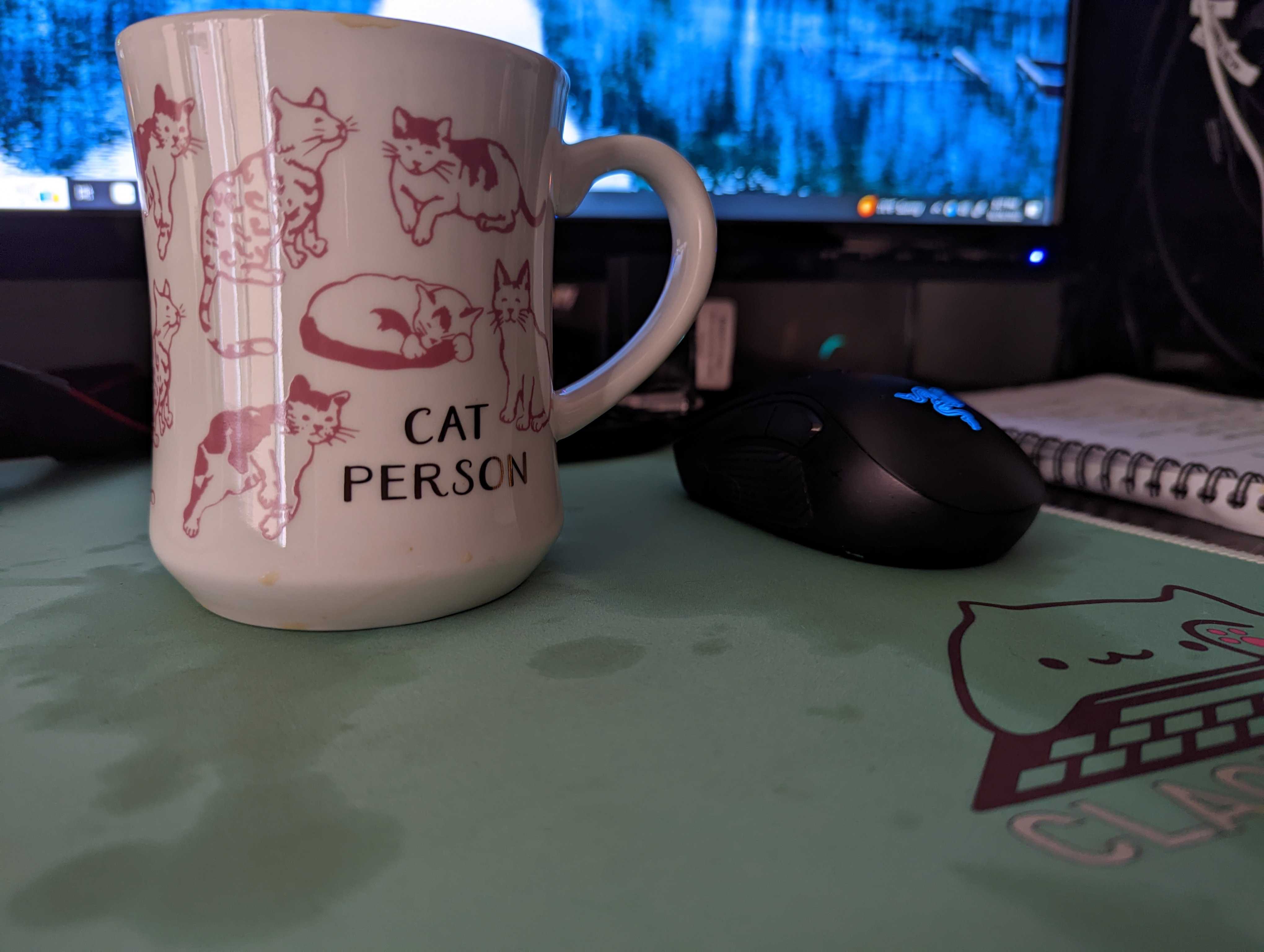I got so excited to take a picture of my coffee cup with my desk mat that I spilled it all over.