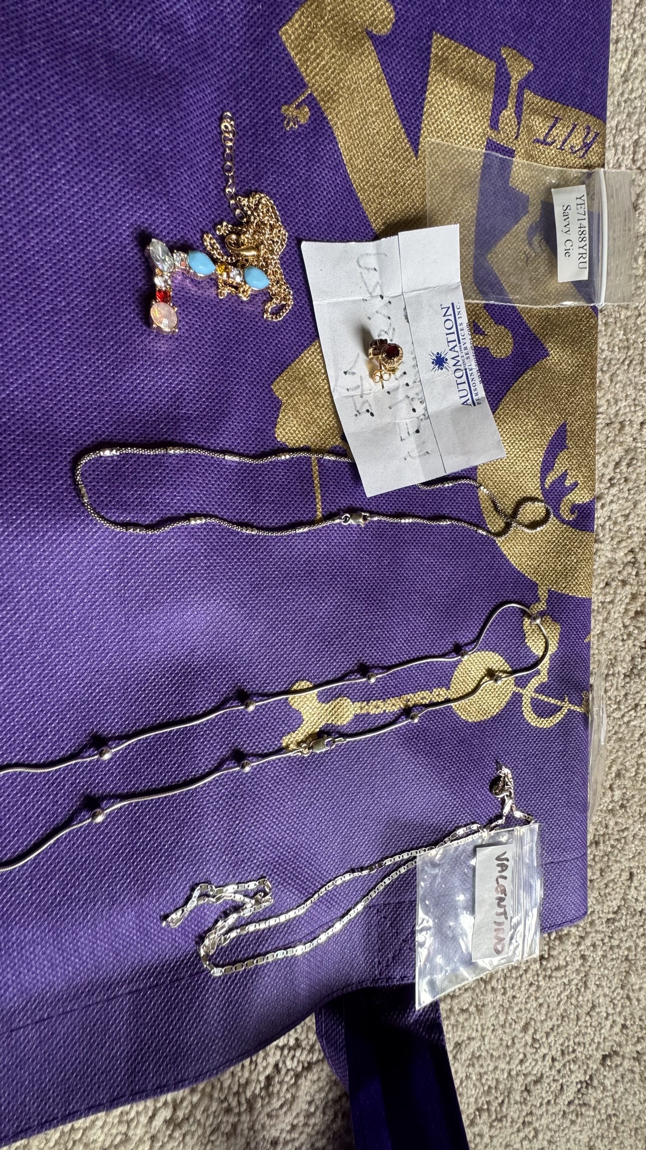 Here’s the jewelry. Some of it I really like. The chains are shorter in length and some even choker style, which I really love. All the chains say 925 Italy, which is awesome. The L necklace is pretty gaudy and the earrings say 925 on them I’m gonna get some of the stuff looked at to see if it’s actually real.