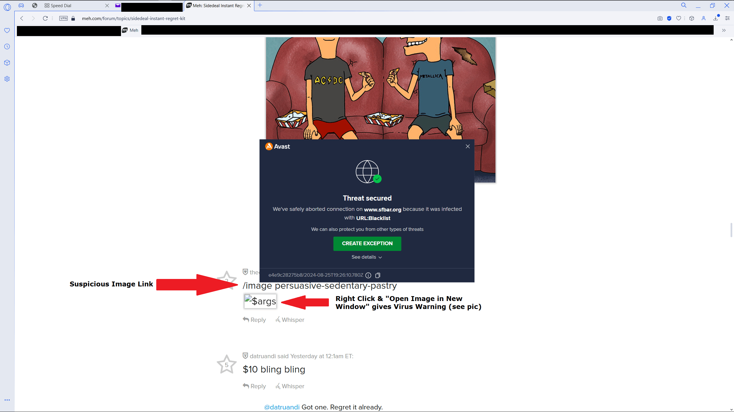 @IndifferentDude@pmarin@sammydog01 I use Avast (on a Mac) and don’t see that. Odd.Also see nothing above Beavis & Butthead either. Ran the Avast scan just now too and my mac is clean.