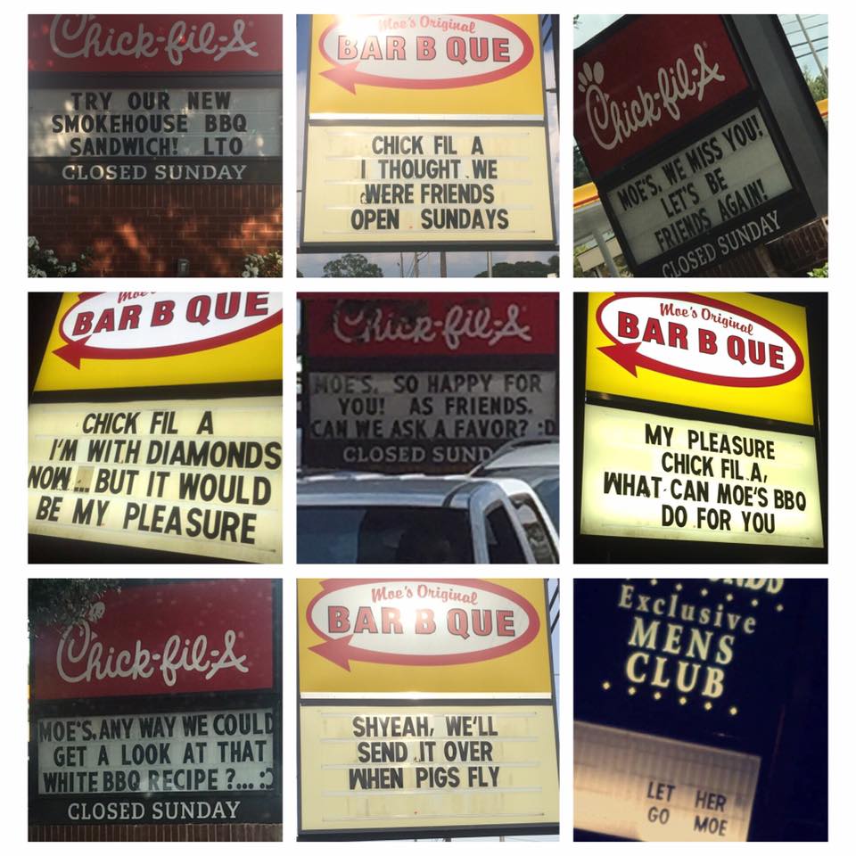 Reminds me of this exchange (that possibly inspired theirs?) that went viral between a local liquor store and a McDonalds’ across the street last year.