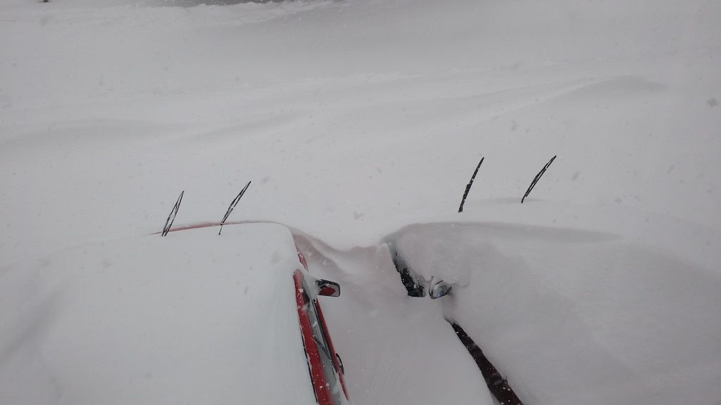 So, we got some snow. From what we're reading, we're still going to get more snow. With all the drifts, it's hard to tell how much we actually got, but we're pretty sure it's at the point that we measure it in feet rather than inches.