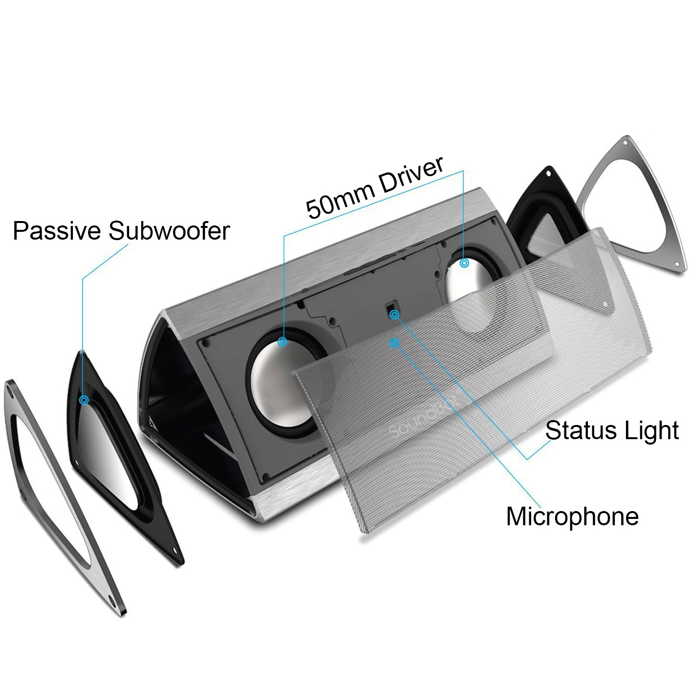 Specs ====- Model: SB520- Condition: New- Built-in 3.5mm audio port for wired or Bluetooth 4.0 wireless connectivity- Connection range: up to 33 feet- Built-in mic- Speaker driver: 2x 50MM, 4Ohm 5W+5W- LF diaphragm dimension: 25x50 MM- Frequency response: 60HZ-18KHZ- RMS: 2X5W- Sensitivity: -45dB- Signal-to-Noise Ratio: 65db- Distortion: 5%- Passive subwoofer- Battery meter display on iOS devices- Battery: Built-in rechargeable 3.7V 2200mAh lithium-ion battery- Playback time: up to 15 hours wired, 12 hours on Bluetooth- Charging time: 4-6 hours- Dimension: 7.5" x 3" x 3.5" - User manualWhat’s in the Box? ====1x Speaker1x Micro USB charging cable1x 3.5mm Aux cablePictures====SpeakerExploded viewHand for scaleAnother viewPrice Comparison====$129.99 List, $69.89 at AmazonFind a relevant price comparison? Please share it in a comment in this thread
