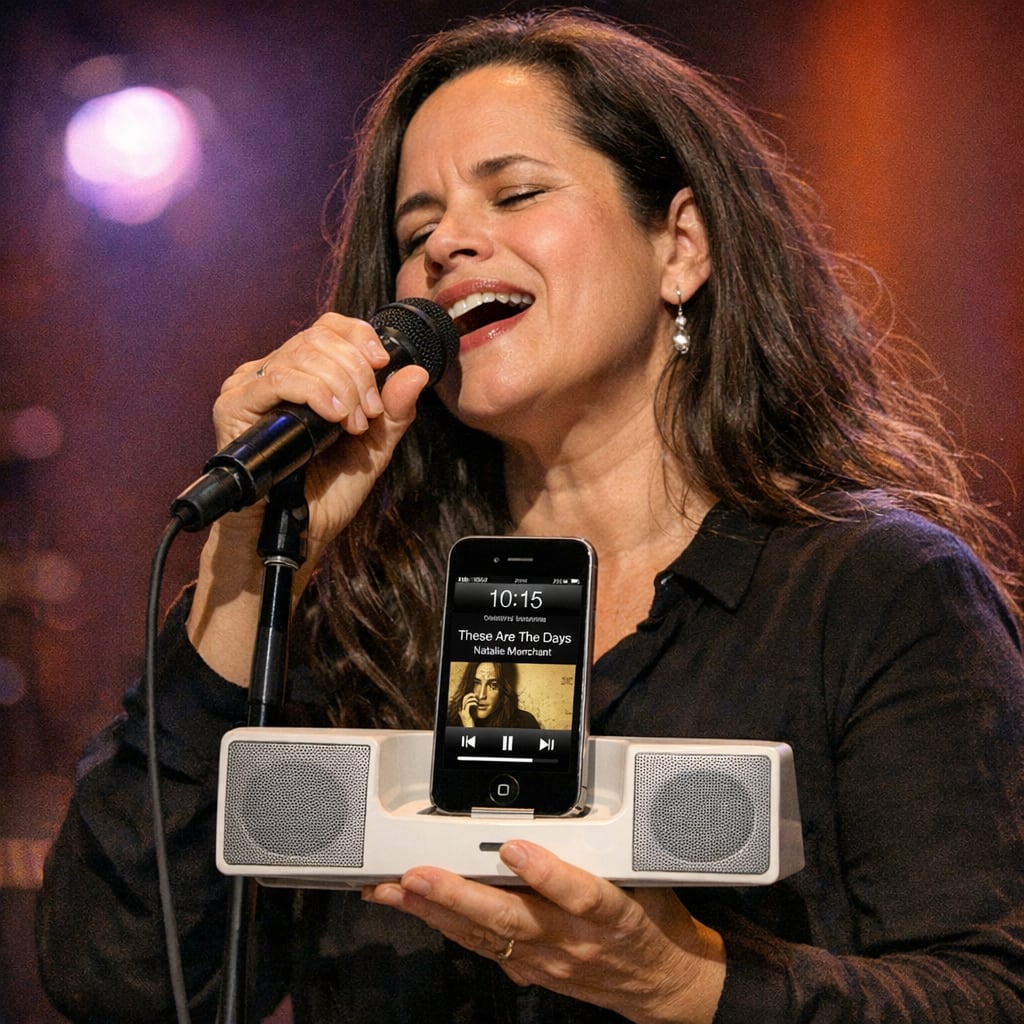 @stinks Here’s the image you requested for “Natalie merchant holding a 30-pin iPhone speaker dock singing these are the days”