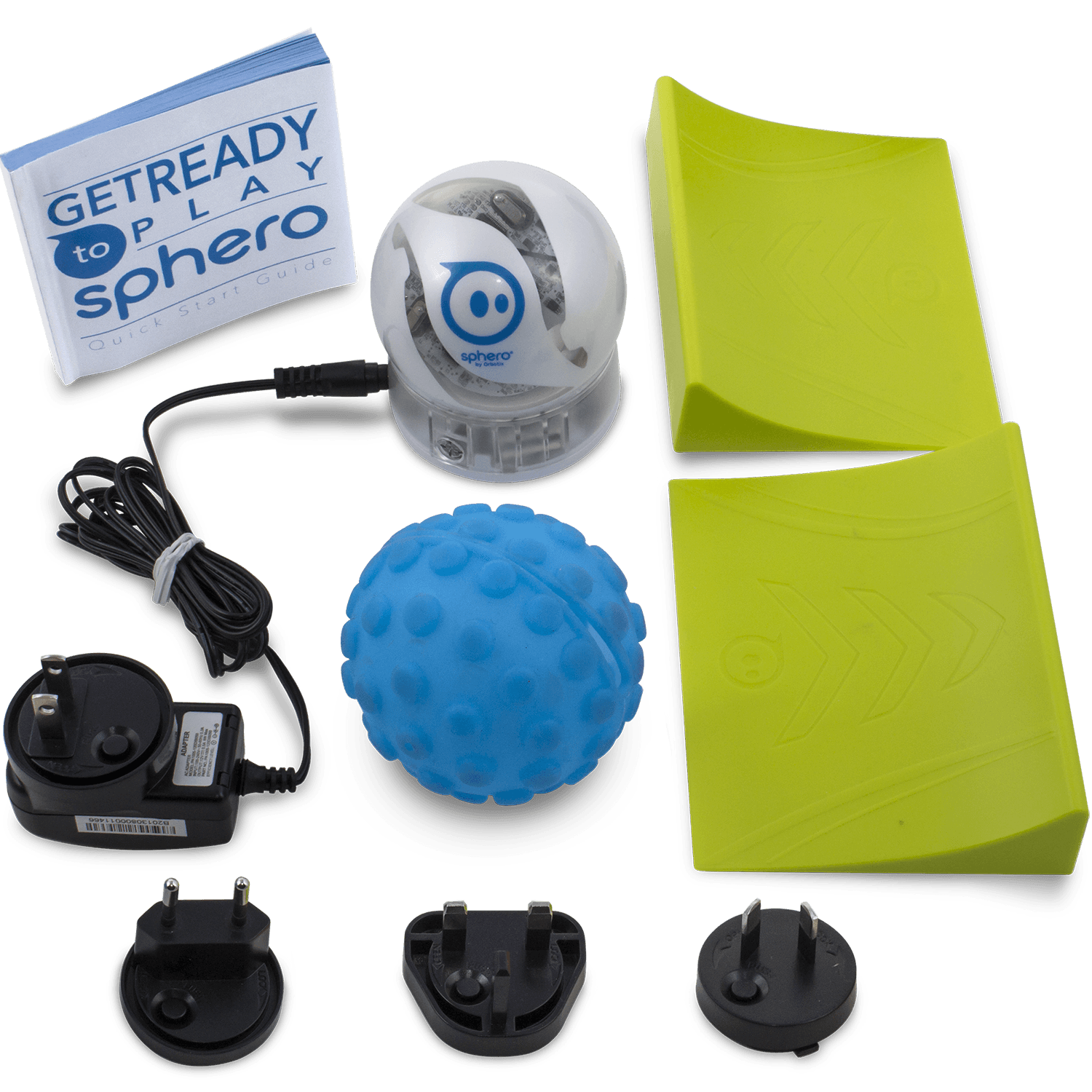 Specs====- Model: S003AP, ACB0BU- Travels 6 feet per second- 3x brighter than Sphero 1.0- 50+ foot wireless range for indoor or outdoor use- Over 25 free apps, including path-drawing, golf, driving, and more- Pairs via Bluetooth- Works with Android and iOS- Inductive charging: just set it in the stand - 60 min drive time- Waterproof- Power: AC 100-240V ~ 50-60Hz .3A input- Includes US, Great Britain, Australia/China, and European plugsCondition: Refurbished (Nubby Cover is New)Warranty: 1 Year Limited SpheroEstimated Delivery: 1/15 - 1/19Shipping: $5 or free with VMP What’s in the Box?====1x Sphero1x Nubby rubber cover1x Charging base1x Power adapter with foreign outlets1x Quick Start Guide2x RampsPictures====Retail boxesEverything in the boxChild not includedWithout NubbyWith NubbyDog not includedBench not includedGleeeeeeeeeeeeeeen!Price Check====$129.99 at Amazon for Sphero 2.0 Revealed (what we’re selling)$99.99 at Amazon for Sphero 2.0 Regular (what we’re not selling, but has more reviews)$14.99 at Amazon for Nubby