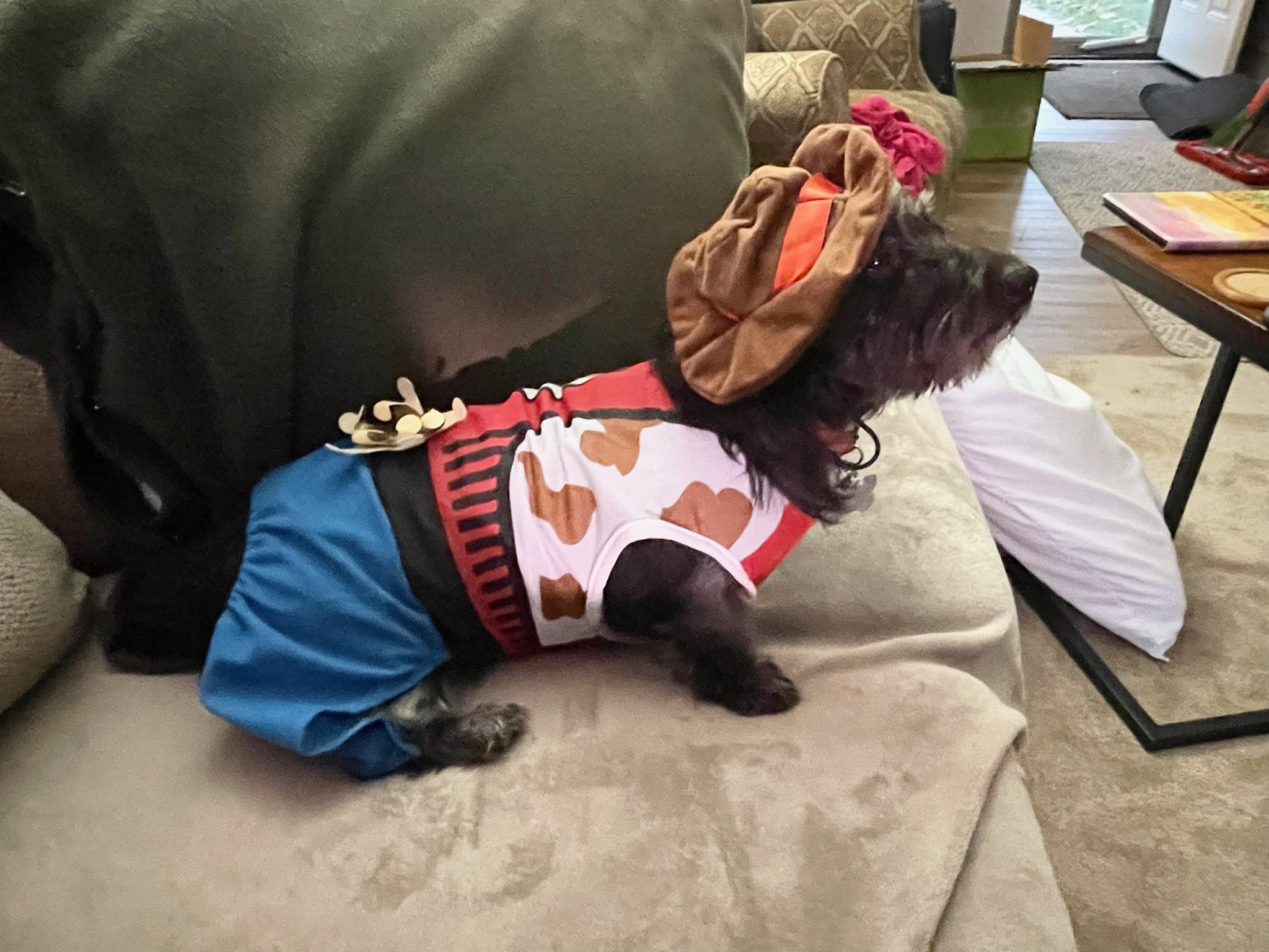 Not spooky, but maybe the funniest dog costume I’ve ever seen: