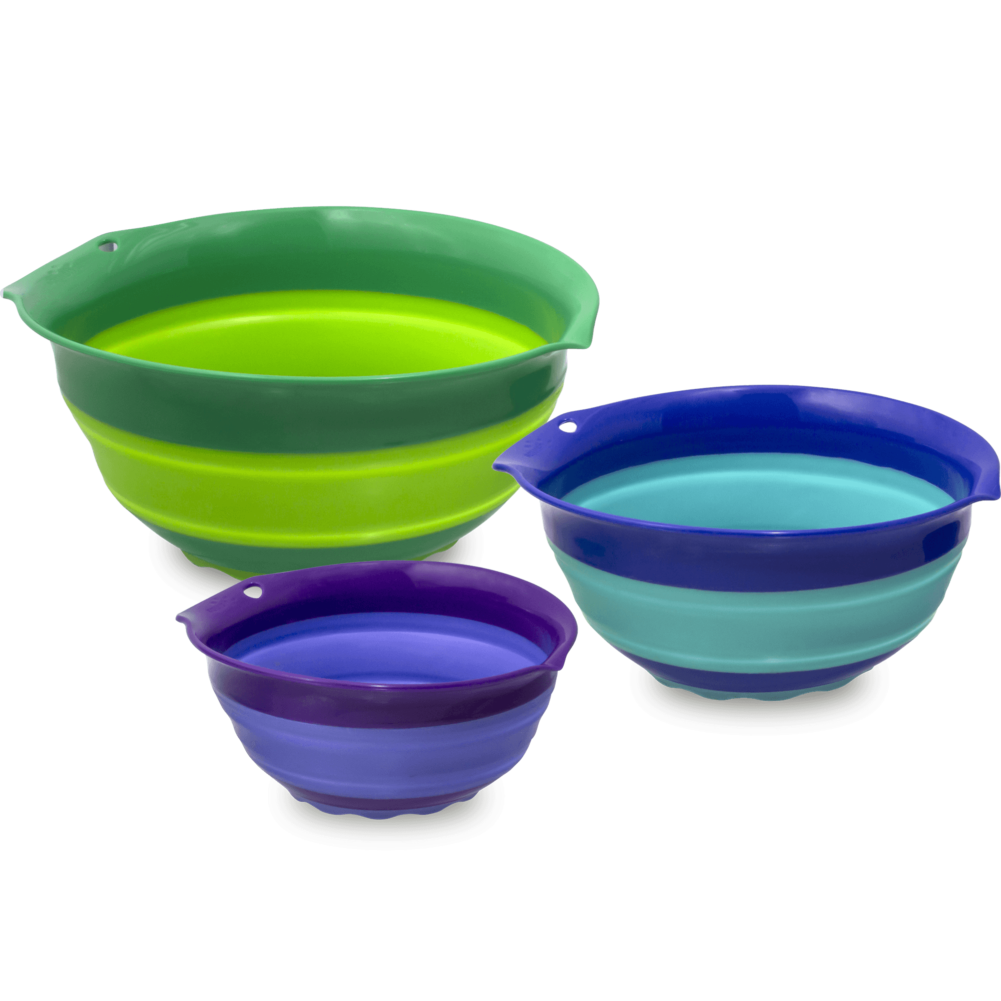 Specs====- Model: K41485- Capacity: 1.5qt, 3qt, 5qt- Polypropylene and thermoplastic rubber construction- Non-slip bases- Easy-to-grip rims with integrated pour spouts- Dishwasher safe- BPA free- Dimensions (1.5qt): 9" x 7" x 1.5" (collapsed) - 3.5" (expanded)- Dimensions (3qt): 11" x 9" x 2" (collapsed) - 4.5" (expanded)- Dimensions (5qt): 13" x 10.5" x 2" (collapsed) - 5.5" (expanded)Condition: New Warranty: Lifetime - Robinson Home Products Estimated Delivery: 1/18 - 1/21Shipping: $5 or free with VMP What’s in the Box?====1x 1.5qt Squish collapsible mixing bowl 1x 3qt Squish collapsible mixing bowl 1x 5qt Squish collapsible mixing bowlPictures ====FoodFlattenedStacked with hand for scaleExpandedHatsPrice Comparison====1.5 quart: $7.99 at Amazon (136 reviews, 4.5 stars, sold by Amazon)3 quart: $12.06 at Amazon (136 reviews, 4.5 stars, sold by Amazon)5 quart: $16.79 at Amazon (136 reviews, 4.5 stars, sold by Amazon)Find a relevant price comparison? Please share it in a comment in this thread