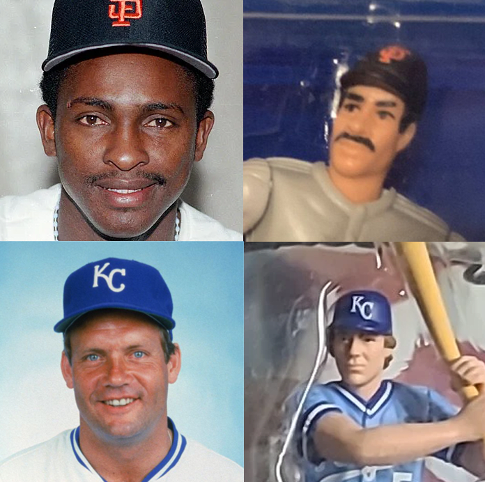 Jose Uribe and George Brett with their alleged likenesses.