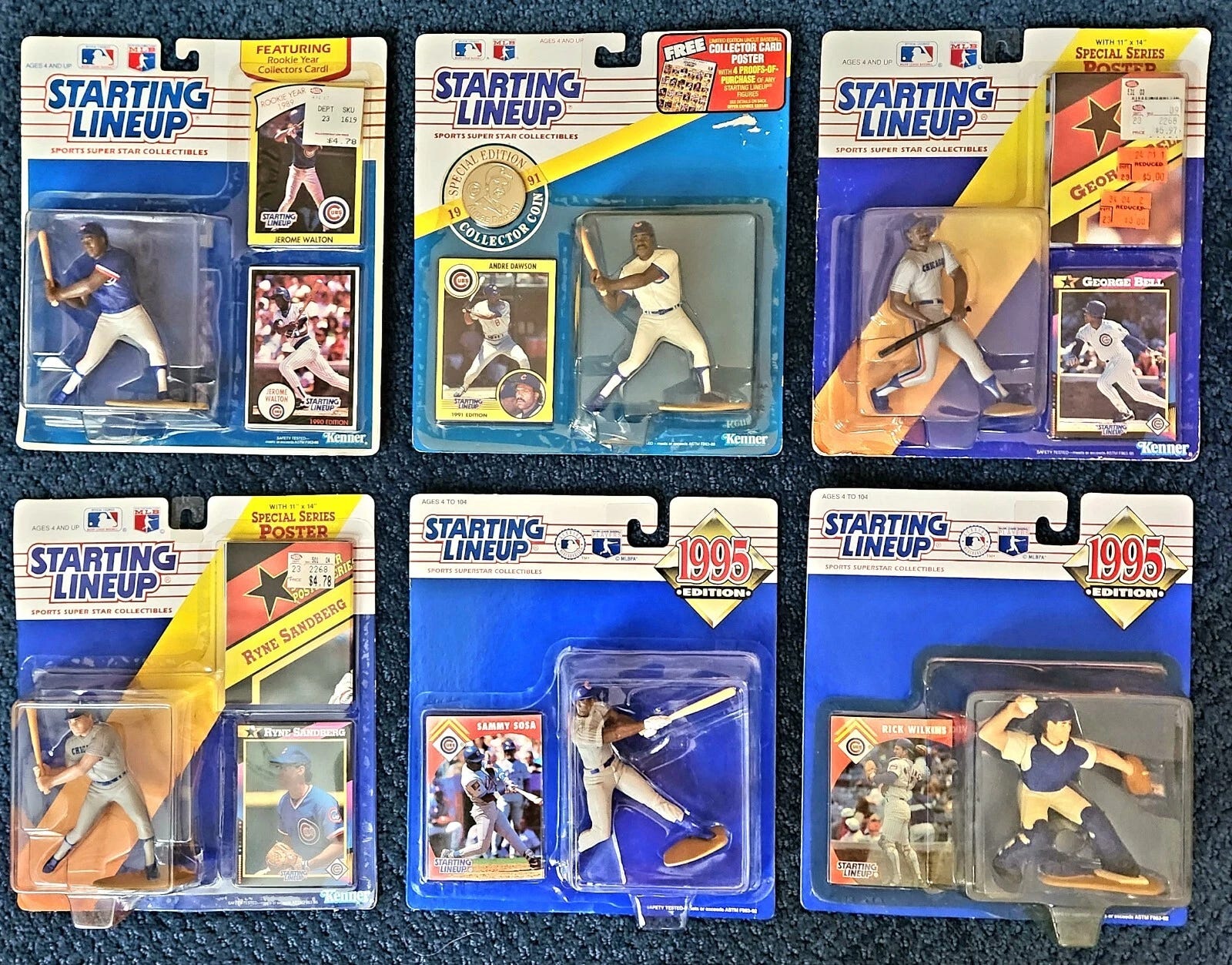 Hasbro quietly let the licenses lapse and Starting Lineup eased into oblivion in 2000. By then, the figures, still optimistically encased in never-opened packages, were a common sight in thrift stores and flea markets. Like baseball cards from the “junk wax” era, most of these figures haven’t seen any significant bounce in value: you can buy standard Starting Lineup figures by the lot on eBay for a few bucks apiece. An attempted revival in 2022 announced new NBA and NFL figures, but the NBA ones sold so poorly the NFL line was never released.