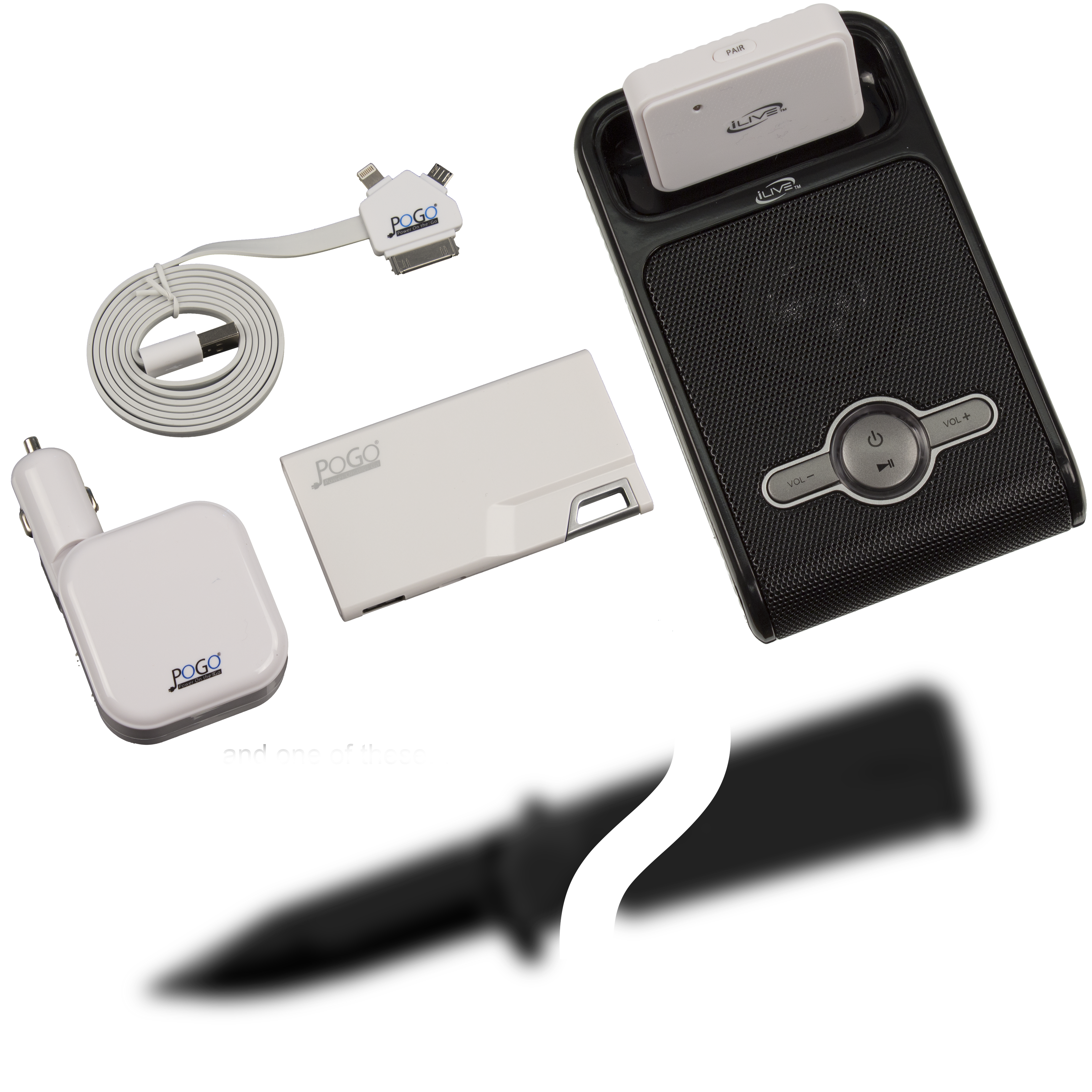 Specs ====- Model: IAB53W, ISP091BM, ISP091B, Random Knife- Condition: New- Bluetooth thing: - Range: 33ft - Converts 30pin dock connector to bluetooth - Supports EDR and A2DP- Speaker dock: - 30Pin or 3.5mm audio input - Power: 4x AAA batteries or AC/DC power adapter (included) - Old as shit- Power Bank: - 1 Meter combo cable: USB to Lightning, Micro USB, and 30-Pin - Wall & Car Charger: 2x USB with DC5V/2.1A max output - Power bank: 1A Output, 2800mAh output- Knife - Stabbin’ fools left and right What’s in the Box? ====1x Random Knife1x 30pin Bluetooth adapter1x 30pin Speaker dock1x Car/Wall charger1x Powerbank1x Combo cablePictures====CrapSpeaker and bluetoothPower stuffKnivesBluetooth DOCKEDPlugPlugBatteryFood