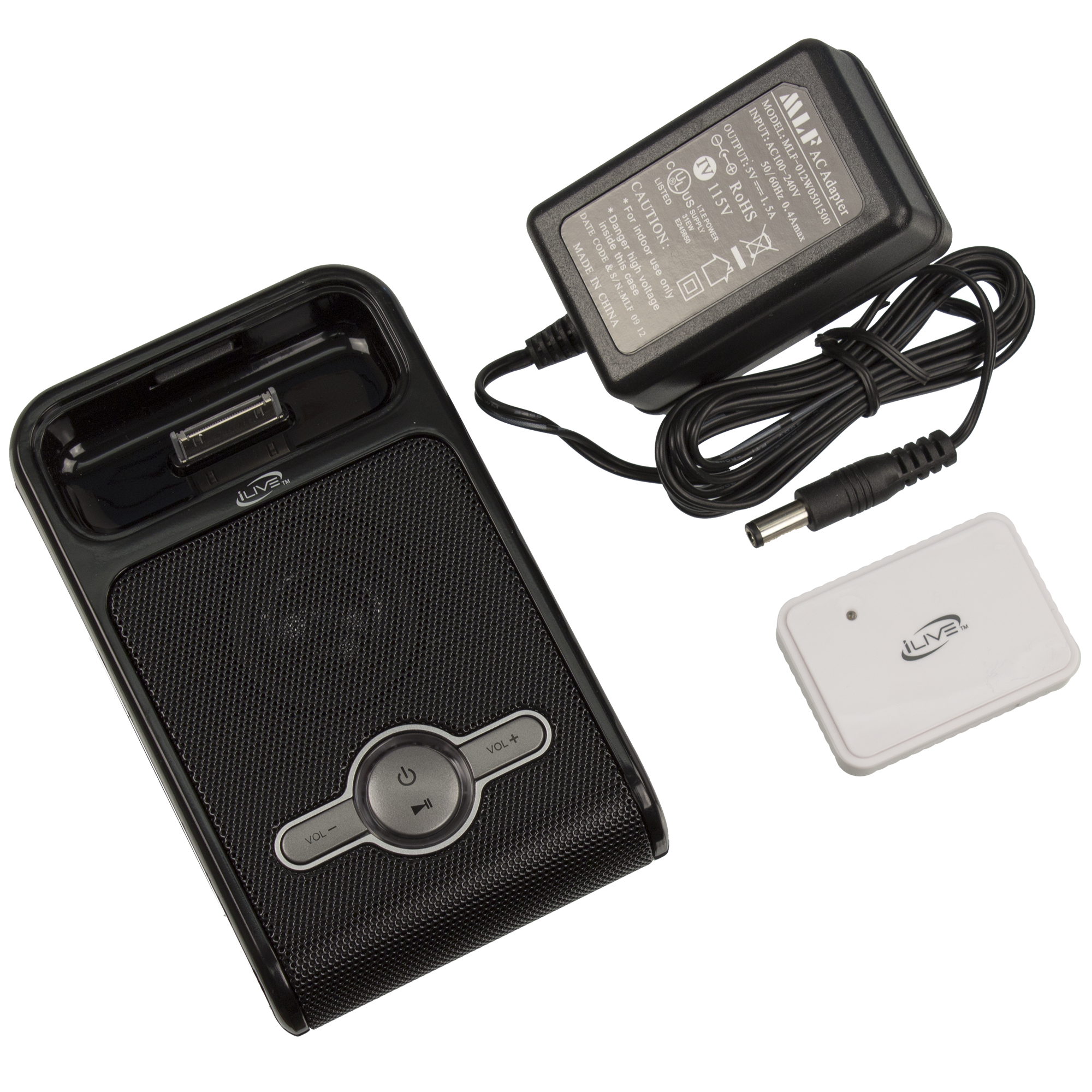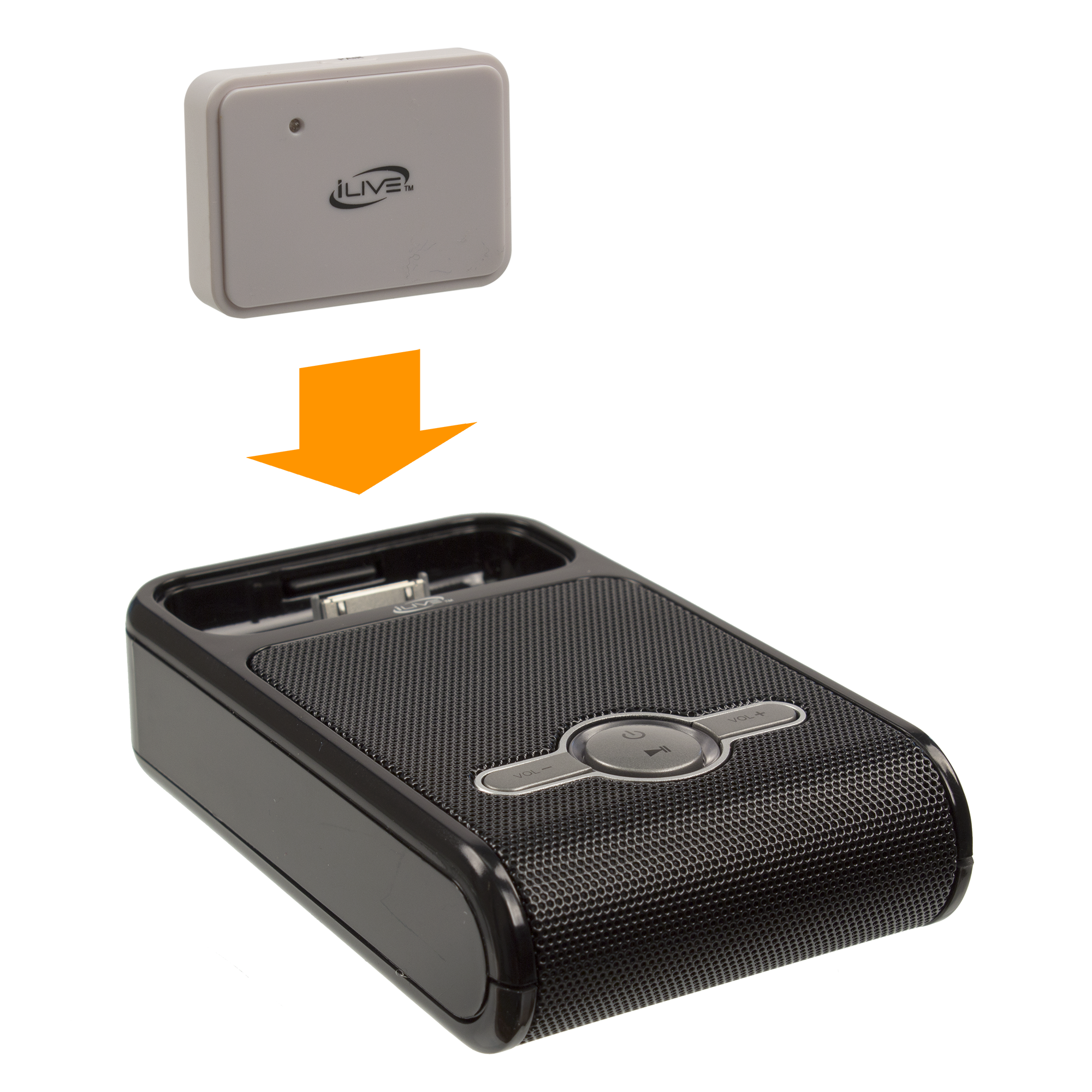The little thing that adds Bluetooth to a thirty-pin docking station works. I have a Klipsch speaker dock I got either here or there, and this works fine.
