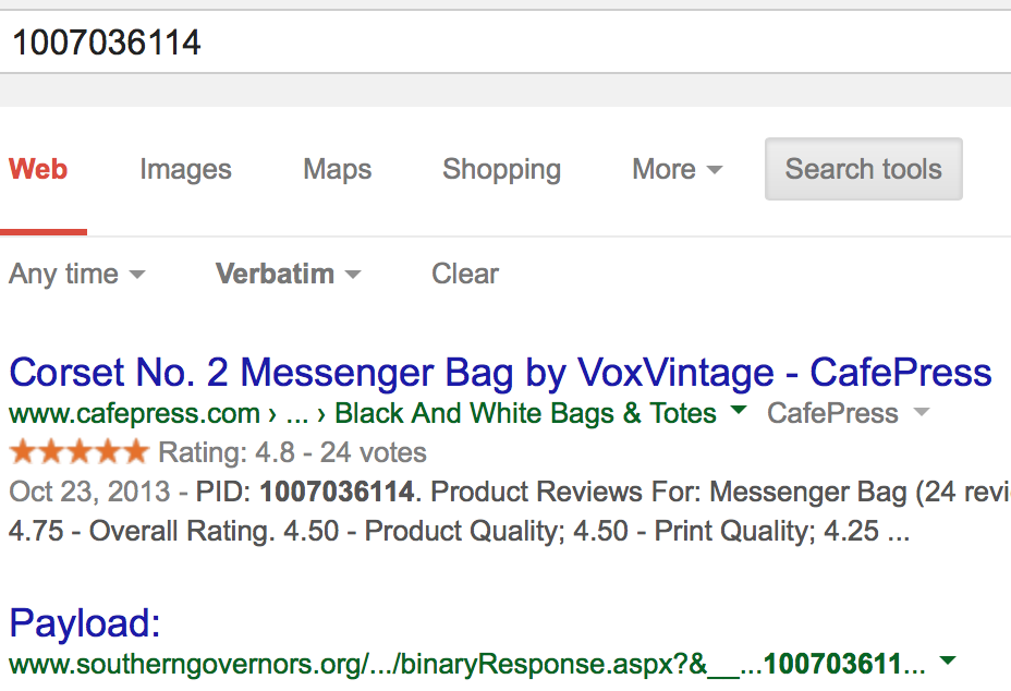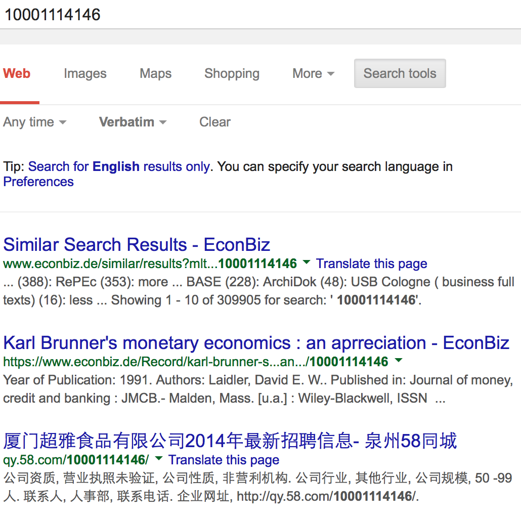 I tried 1006613319 in IE and it returned 1 result without 'verbatim'.