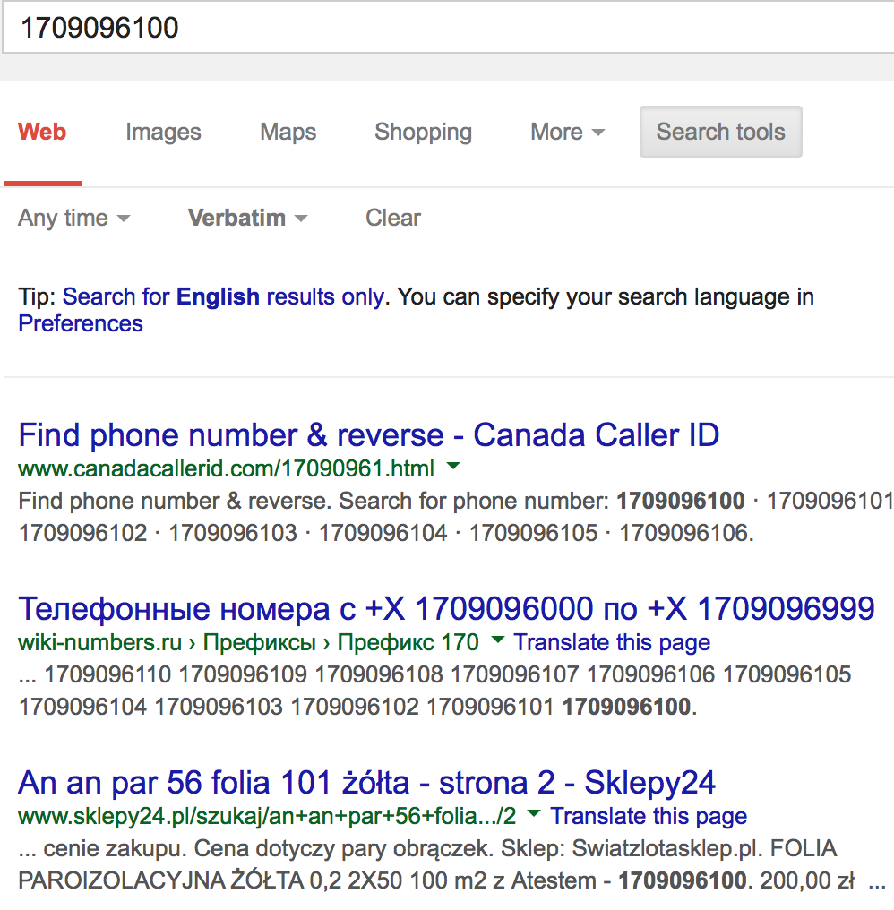 Clarification. Does it count if you get google hits that are partials of your number? Like if your number is part of a hyphenated something or a portion of your number is listed and they are guessing if that is your number ?
