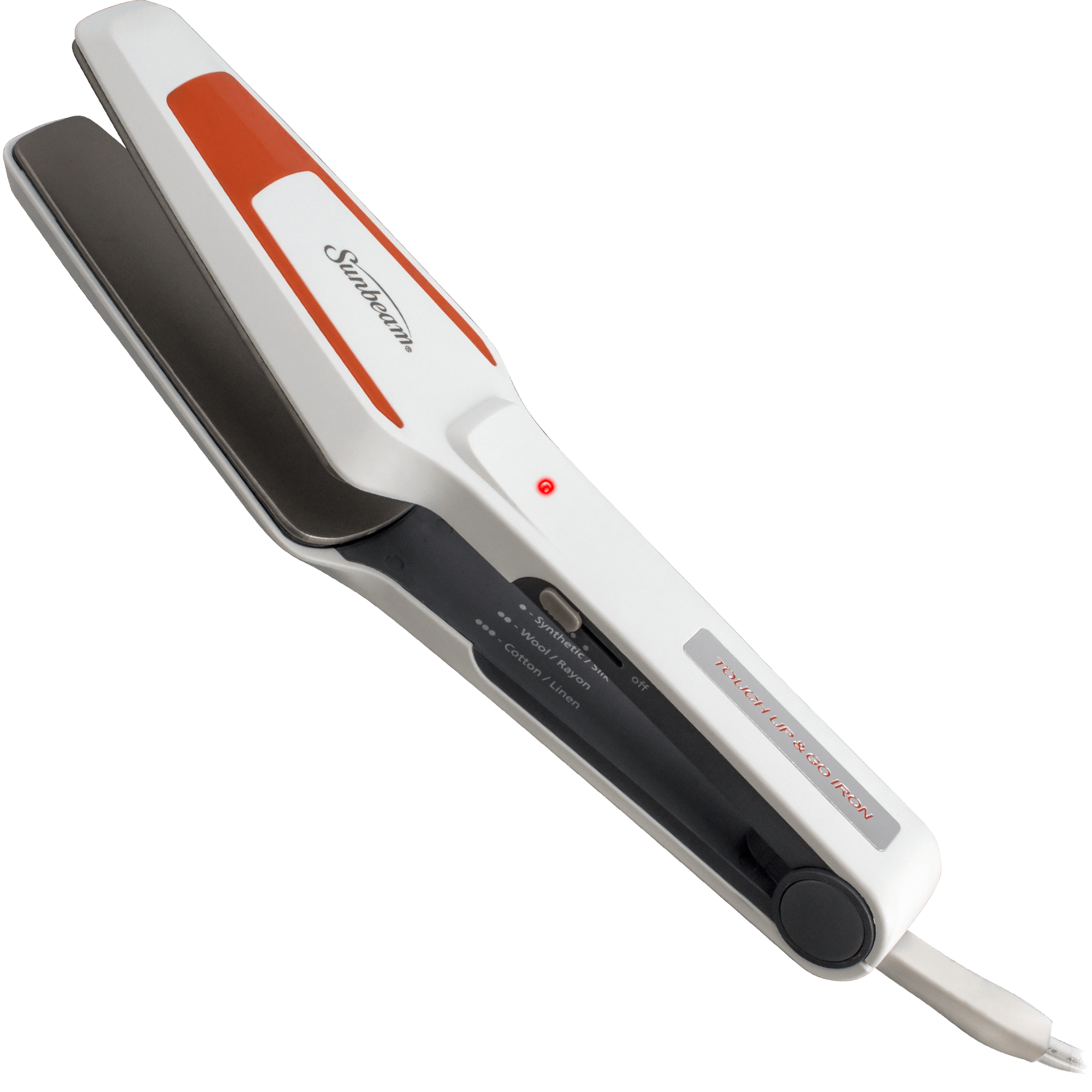 This is the instruction manual from the Sunbeam site ~ Iron does not have a steam reservoir and is not advised for use on hair.