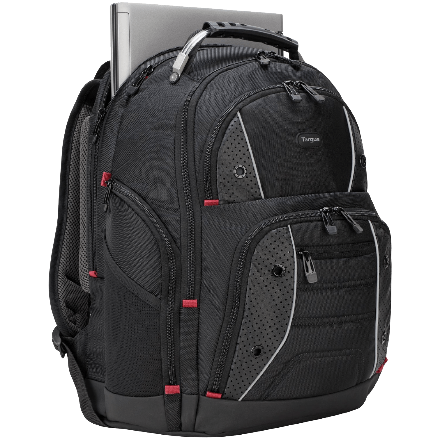 Specs ====- Model: TSB23901- Color: Black/Perforated- Interior Color: Black- Fits laptops with 17" screens and under- Water-resistant case bottom- Durable metal accents and zipper pulls- Filled with multiple zippered compartments (11 total zippered pockets), file storage, two side water bottle pockets- Dimensions: 14.57" x 7.87" x 20.08"Condition: NewWarranty:Limited Lifetime TargusEstimated Delivery: 3/25 - 3/28Shipping: $5 or free with VMP What’s in the Box?====1x BackpackPictures====BackpackSide viewLaptopBackFrontPizzaPrice Comparison ====$79.99 List, $60.35 at Amazon (sold by Amazon, 2,020 reviews)$57 at Amazon (fulfilled by Amazon)Review Highlights- “I am currently going to school and also need a laptop bag… This backpack is AMAZING the only thing it does not have is a spot for the kitchen sink and an mp3 player pouch on the strap. It has several pockets and a hidden one inside the lower back cushion. Airflow is GREAT and while it does take some getting used to you only feel a portion of the weight!!! I would buy this thing for much more than i did!!! If you need to carry books and a laptop this is the bag! if you need just the laptop and accessories than look elsewhere. If you need more i would go with the XL. Currently I have 3 textbooks, 3 notebooks, A Wacom tablet (in it’s case), a 15.6” laptop, several accessories, a change of clothes and a hoodie in mine and it’s still comfortable!!! The only time i notice the weight is when getting on/off my bike or when putting on/removing the backpack!!!" - Amazon Customer- “I bought it because of the reviews.” - Amazon Customer- “a” - Amazon CustomerFind a relevant price comparison? Please share it in a comment in this thread