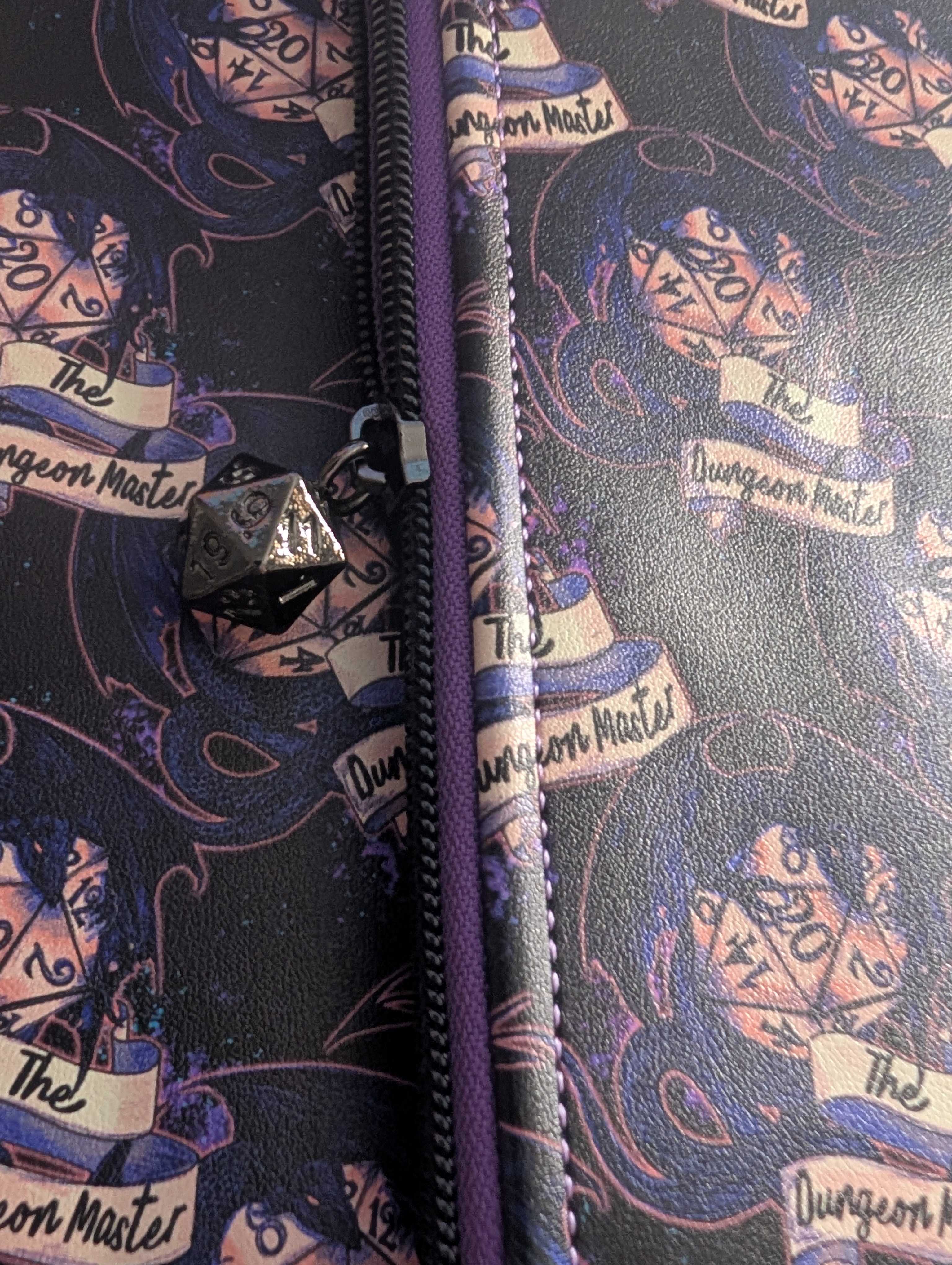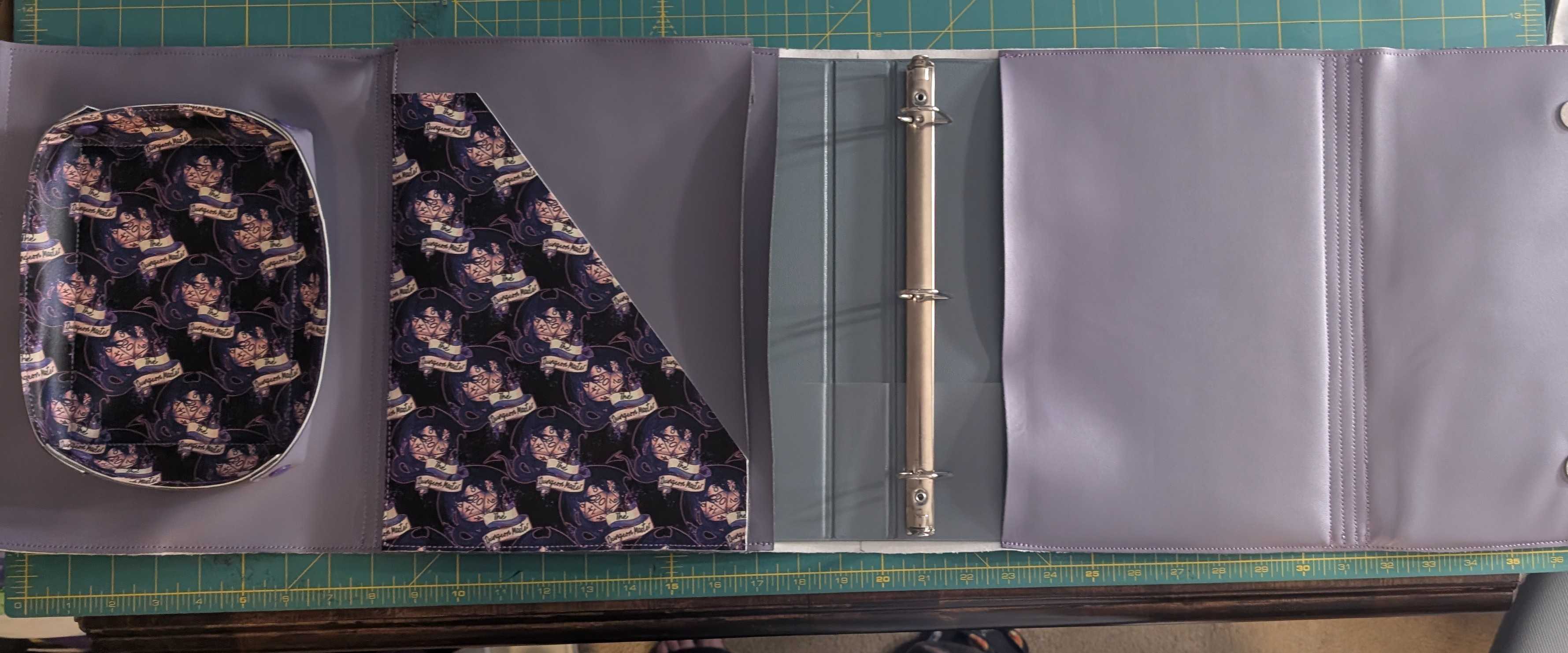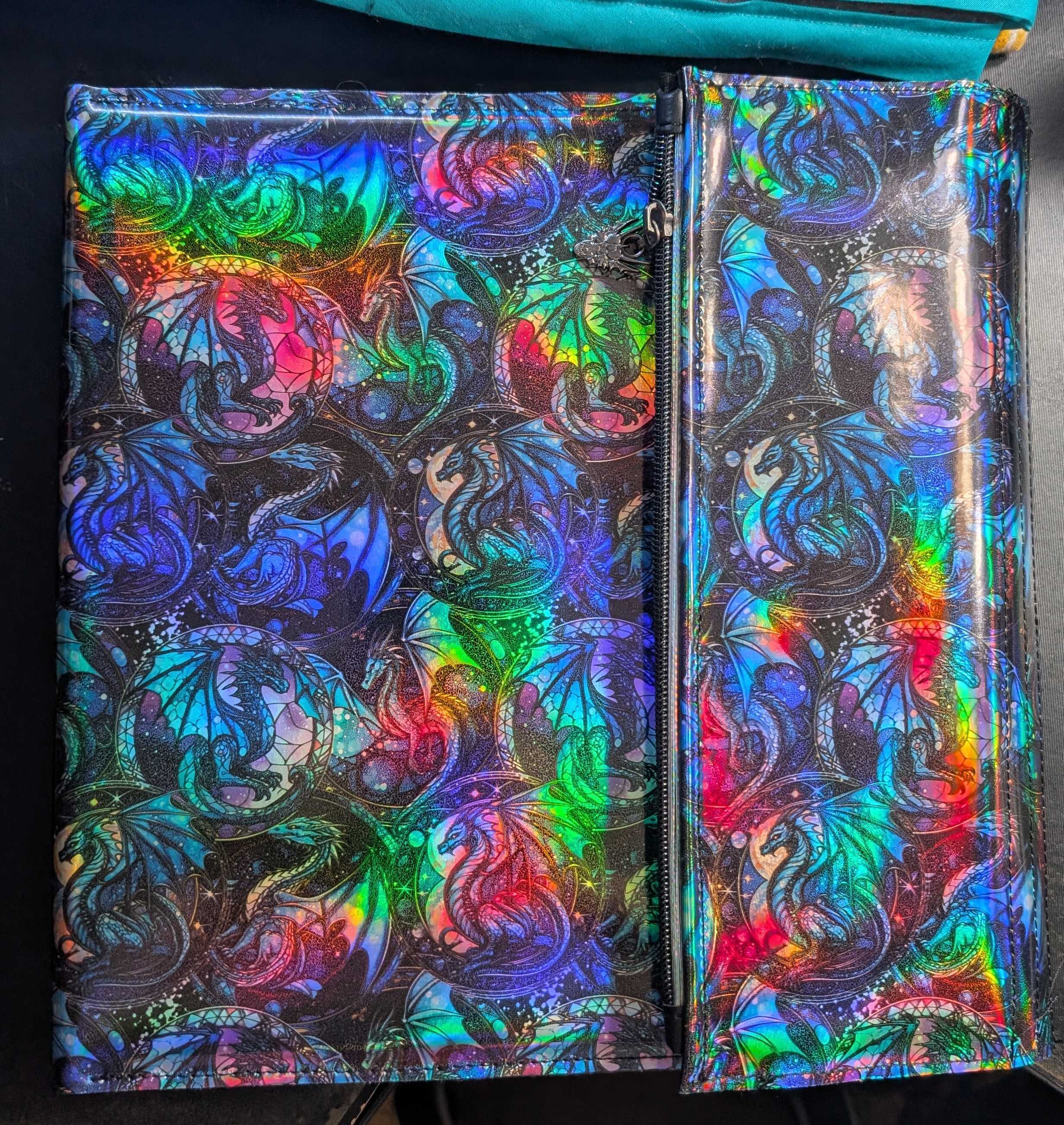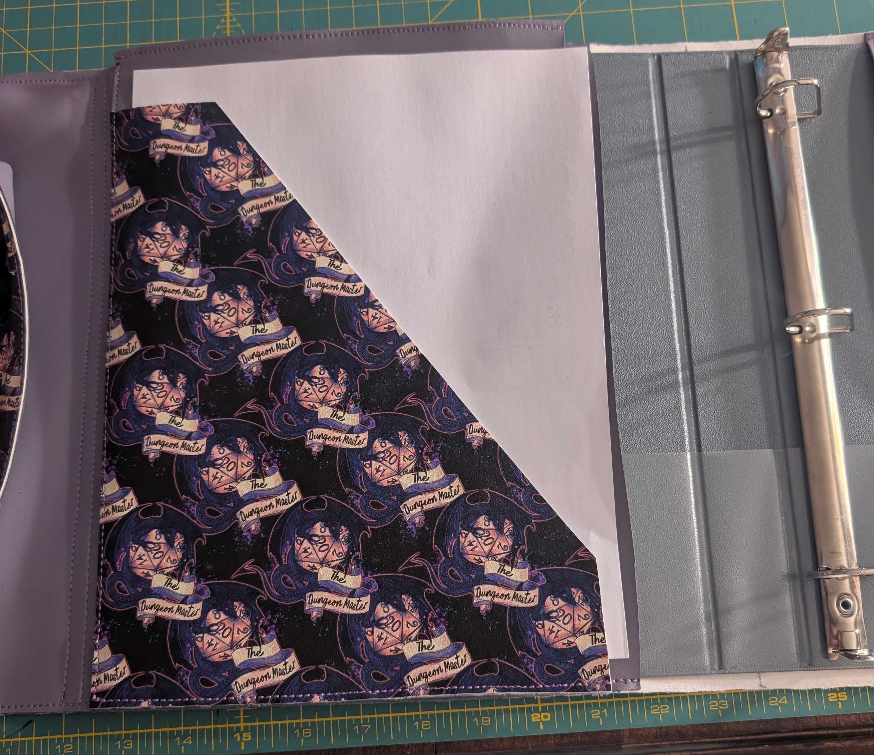 I made a couple of DND trapper keepers with a dice tray. I can’t take credit for the main trapper keeper style pattern, but adding the dice tray panel and making the middle portion a stats sheet holder was my adjustment.