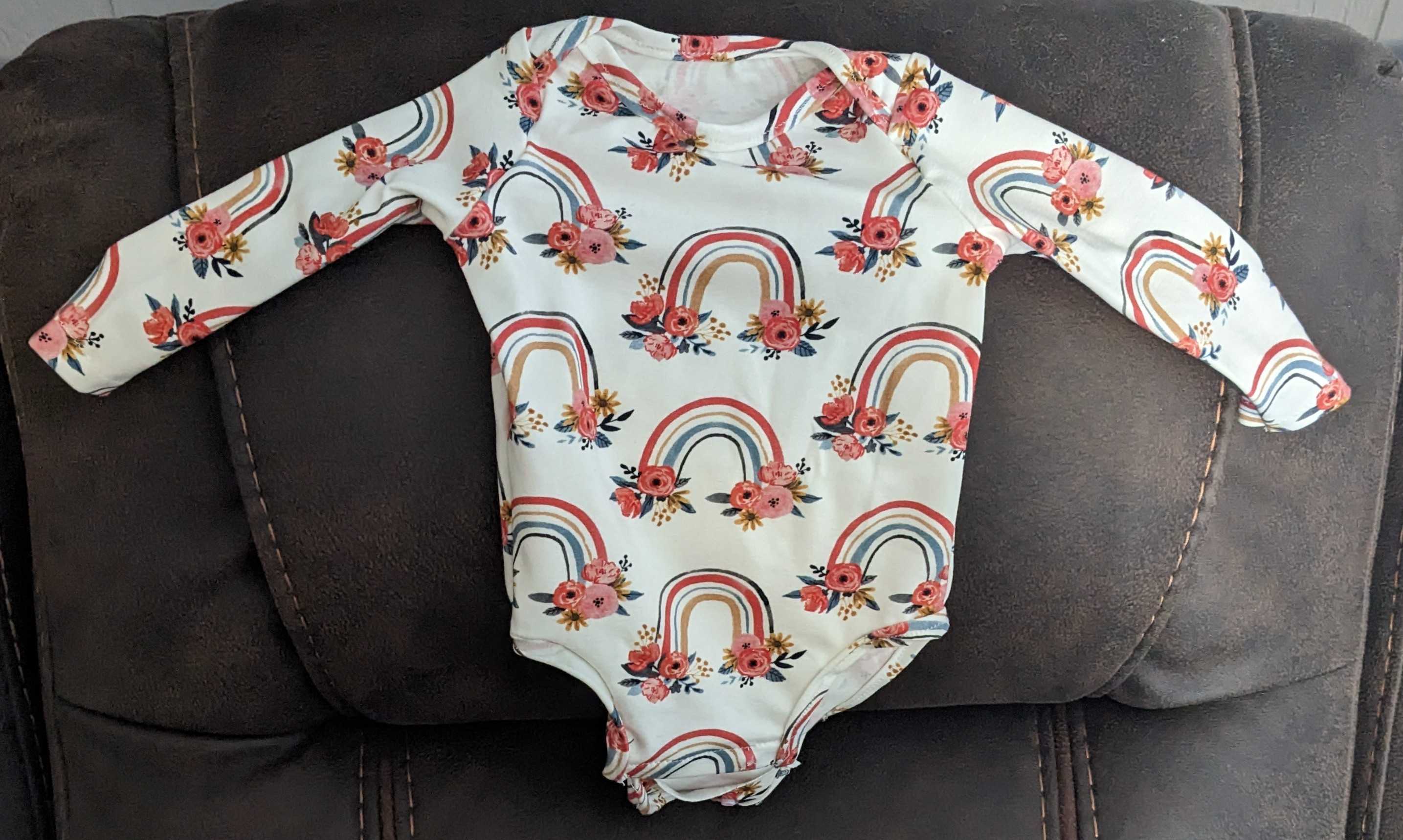 These are cut and sew onesies on organic cotton knit, from an artist on spoonflower. Pretty straightforward instructions and clear cut lines to follow.