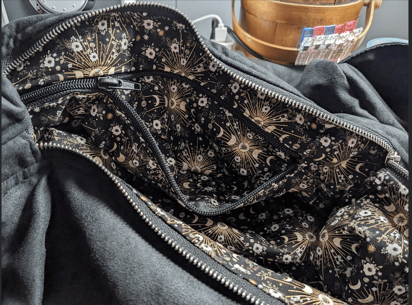 – Zippers! This thing had 4 different zippers, each for a different type of pocket. My zipper foot got a work out.