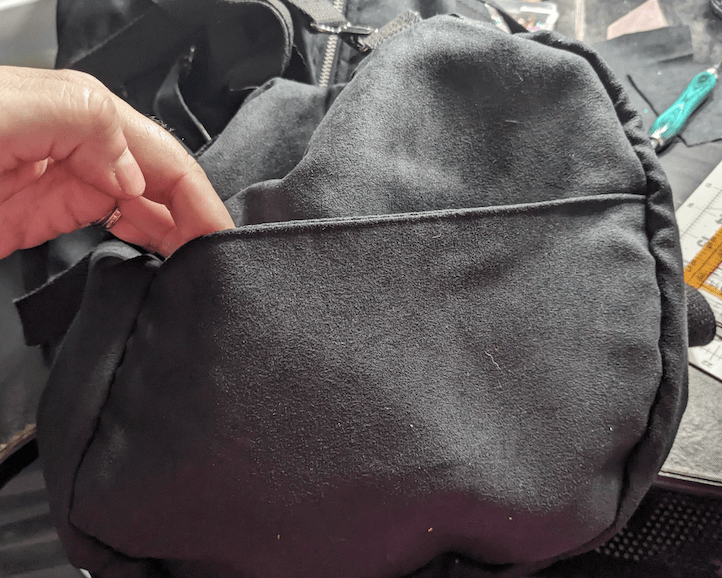 In this case, the ease is lining up the sides with the main panels. I couldn’t quite get it, so I had to trim off some of the side panels. The final bag looks good enough that you can’t tell.