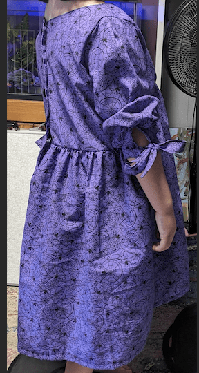 (I’m with her, it didn’t turn out as cute as I wanted it to, but the sleeve ties are great.)