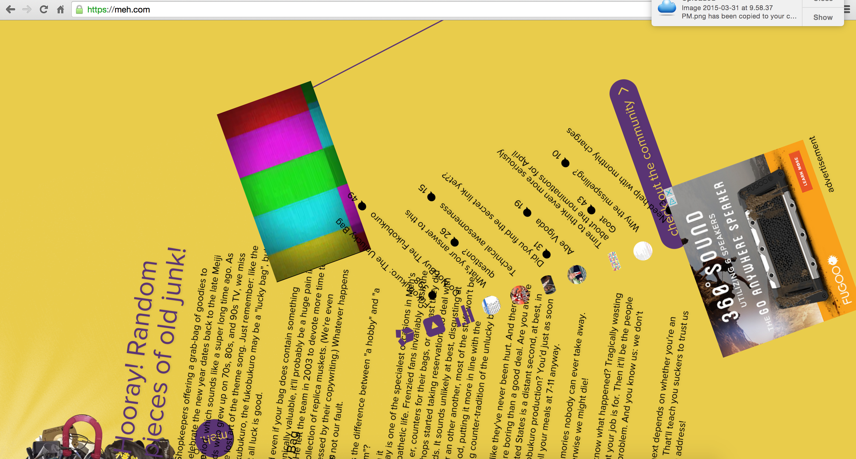 But today is one of the specialest occasions in Meh's short, apathetic life. If we insist on shoving our sales links all up in your Twitter grill, the least we could do is midwife some awesomeness into the world. One chip and your fingertips are stained orange for days. For an other another, most of the stuff won't be all that good, putting it more in line with the burgeoning counter-tradition of the unlucky bag.