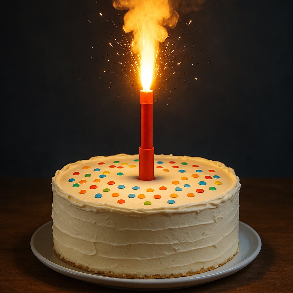 No one will forget a road flare /showme a road flare on top of a birthday cake