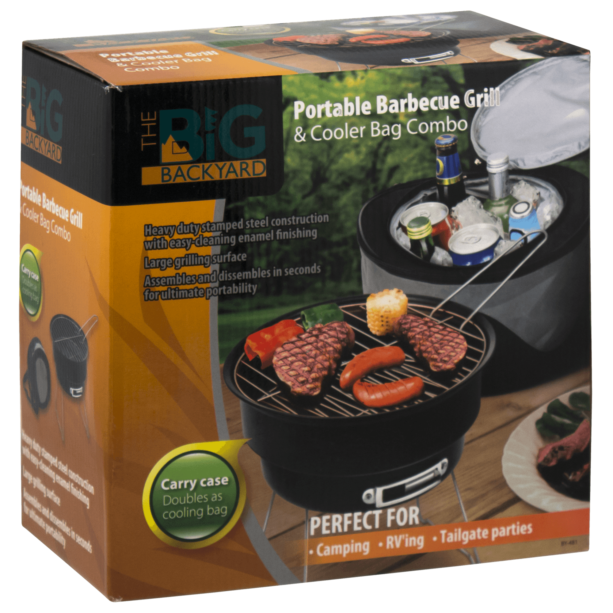 Specs ====- Model: BY-481- Condition: New - Grill surface area: 9.75" x 9.75"- Height: 4.5" (without legs), 9" (with legs)- Cooler interior dimensions: 8.5" diameter x 6" heightWhat’s in the Box? ====1x Grill2x Chrome plated cooking grills1x Cooling/storage bagPictures====Retail boxGrillin’ and coolin’StorageCarryingOpen coolerBack of the box