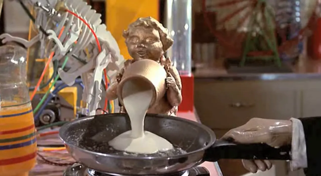 The dream of a fully automated breakfast dies hard. The time of day we most crave a hearty, nourishing meal coincides with the moment we least feel like doing the work to make one. From Wallace & Gromit to Chitty Chitty Bang Bang, from Pee-Wee’s Big Adventure to Back to the Future III, no other meal has been the subject of so many convoluted contraptions.