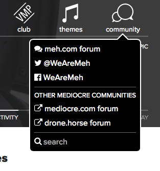 I loved the new drop-down that lets you choose the forum you want. How very un Meh of you.