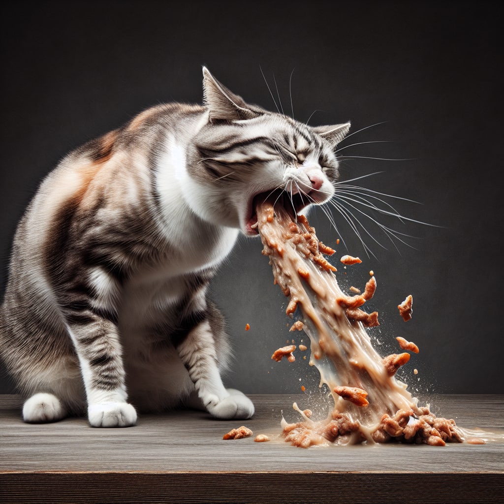 Vomitting on a direct path where you walk or off a shelf…down the wall after gobbling a bowl full of dry food.