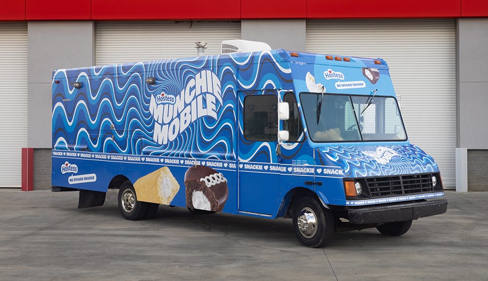 Congratulations to Hostess, who last week turned a longtime flirtation into an official relationship. The Hostess Munchie Mobile marked the week leading up to the stoner holiday of 4/20 by rocking up outside cannabis shops along the East Coast to hand out free snack cakes. It culminated with a six-hour session in Brooklyn on 4/20 itself for those who “like their snacks the way they like life - baked and sweet.”