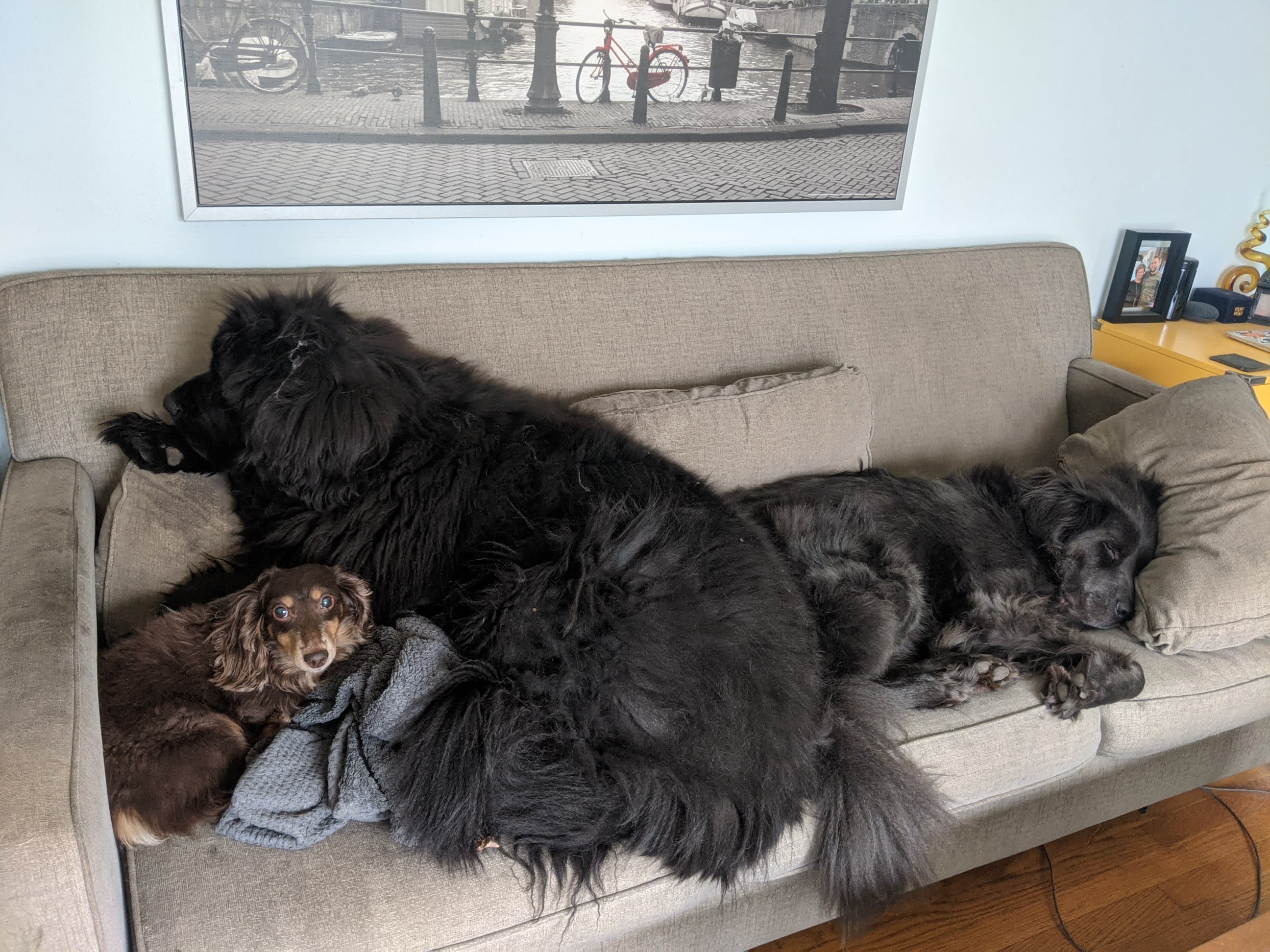We have a house full with our two Newfs, a Miniature Dachsund, and a COVID rescue kitten