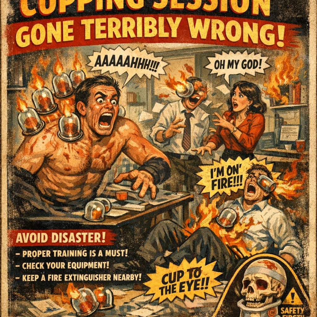 @zippyus Here’s the image you requested for “cupping session gone terribly wrong workplace safety poster”