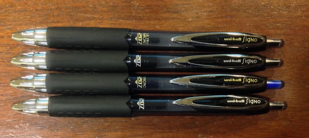 7No not asking to borrow a pen... But, I seem to have misplaced my good pens again. I'm looking to purchase a few of the good ones, and hide them throughout my stuff (They will probably end up right next to each other) but I'm looking for a Gel ink refill that fits Zebra Sarasa/Pilot g2/Uniball 207 signo that are decent quality, but cheap.