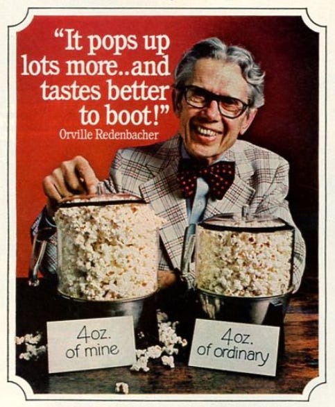 Advertising is rife with fake nerds, and fake farmers, and, especially, fake scientists. Orville Redenbacher was the genuine article of all three archetypes. And as detailed in the book Just Call Me Orville by Robert W. Topping, popcorn was his life.