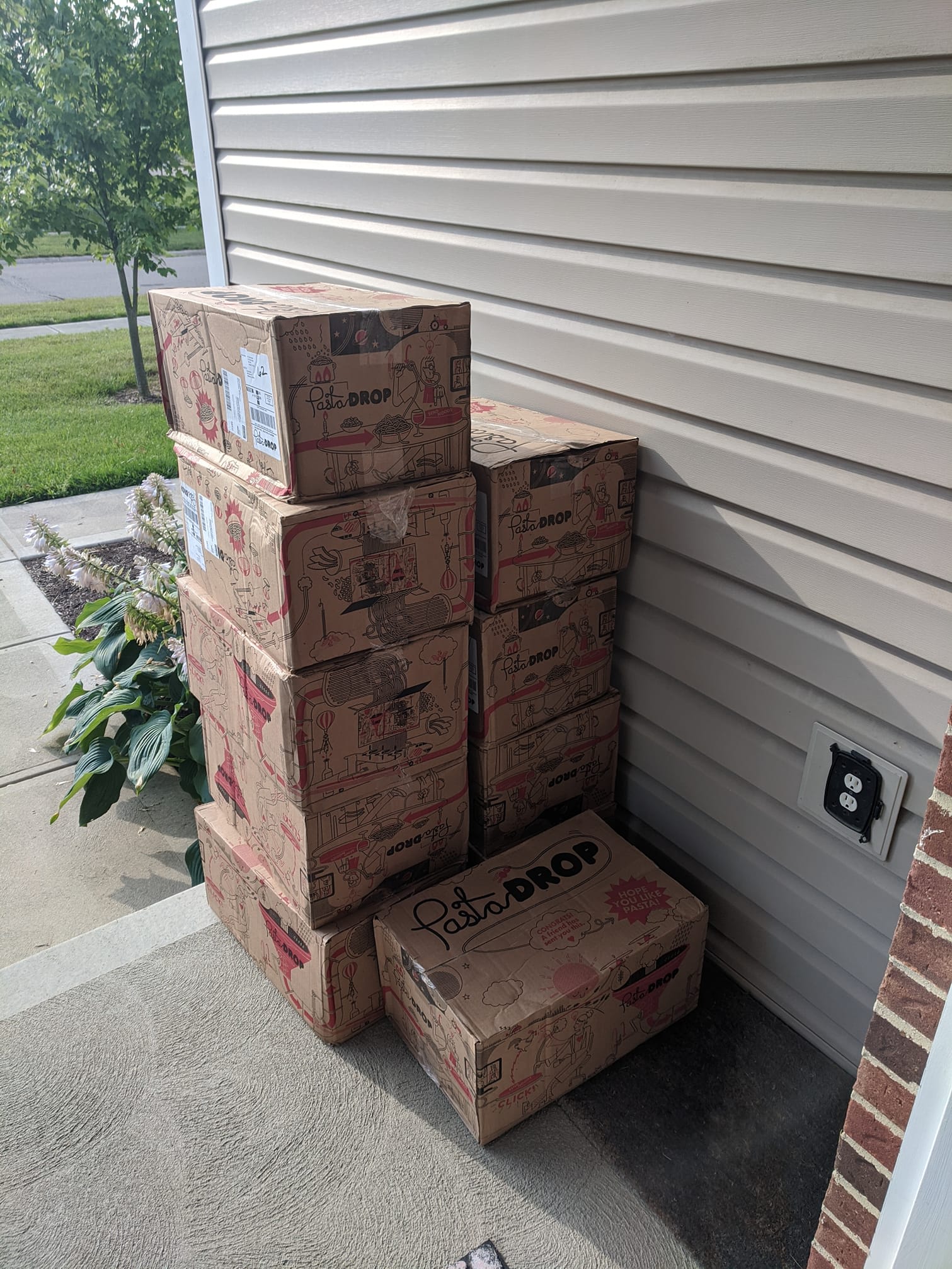 I’m guessing I hit the jackpot and my wife is getting 100lbs of Penne. 5 boxes not 6… So what is the mysterious extra box. A Spaghettini straggler?