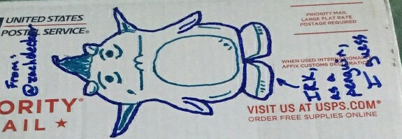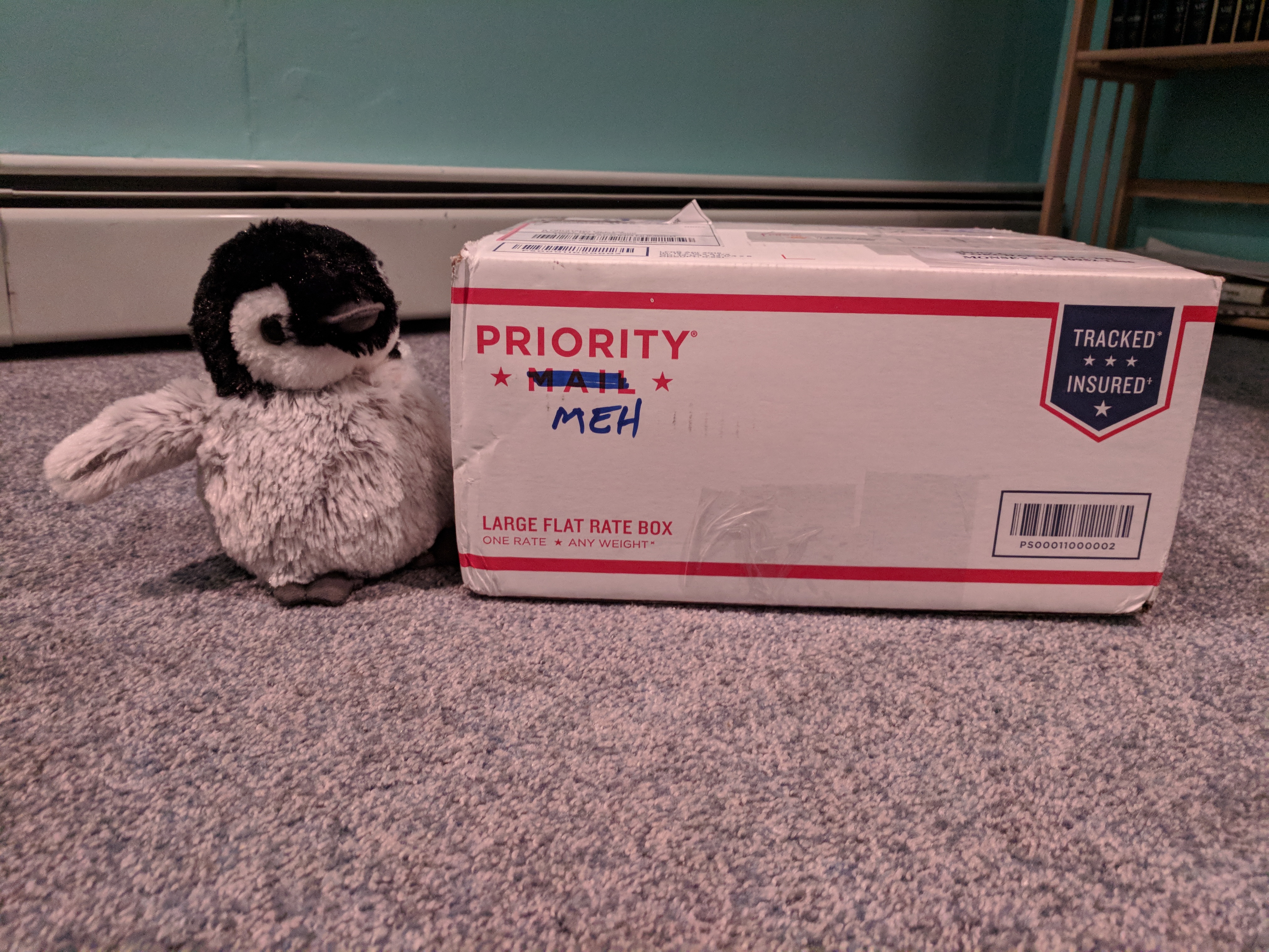 I am utterly fearful of this box. It came too quickly. It looks too innocent. It is from @PlacidPenguin.