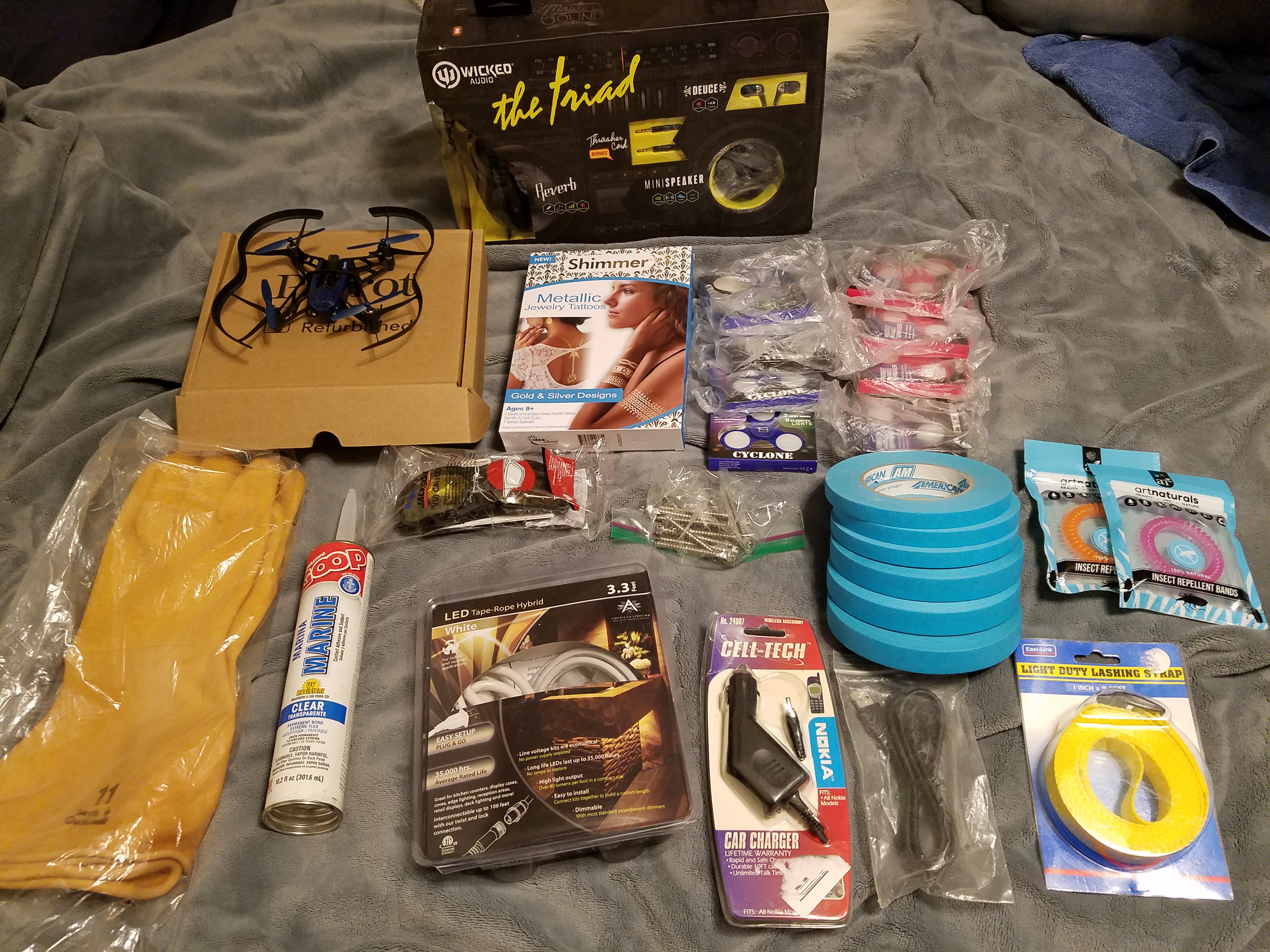 That’s right, a PHONE CORD!!! Actually super useful, I’ve been meaning to extend my phone at work, and don’t feel like getting out the crimper to make my own, so great! And oh yeah, a 10’ HDMI cable. No more taping my laptop to the back of my TV because all I’ve got is six inches, oh no, this baby will reach all the way to my coffee table! And what’s that? A battery pack with a USB powered fan?! This is gonna be great for those long, hot camping weekends… the only question I have to answer now is: do I charge my phone, or cool my face? And the crown jewel: a dash cam! This is particularly awesome, given that my current dash cam’s battery is severely bulging and no longer will hold a charge. How’d you know?!