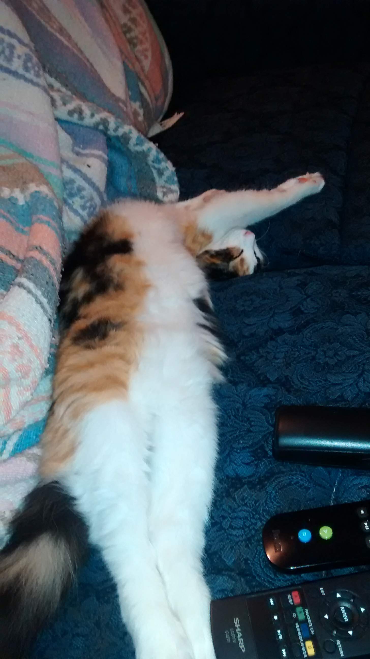 @macromeh Cute. I have several boneless cats who also appear to be velcro cats when you try to move them. I’d swear they were actually liquid cats at times. One I had 20 years ago used to sleep in the bathroom sink, was hard to get out so I’d turn the water on. He’d just lie there until the sink was ready to overflow. Then he’d jump to the floor (the water must have reacted with his bones to make them solid again LOL) and do the wet cat dance. He didn’t mind water (he’d walk in the bathtub).